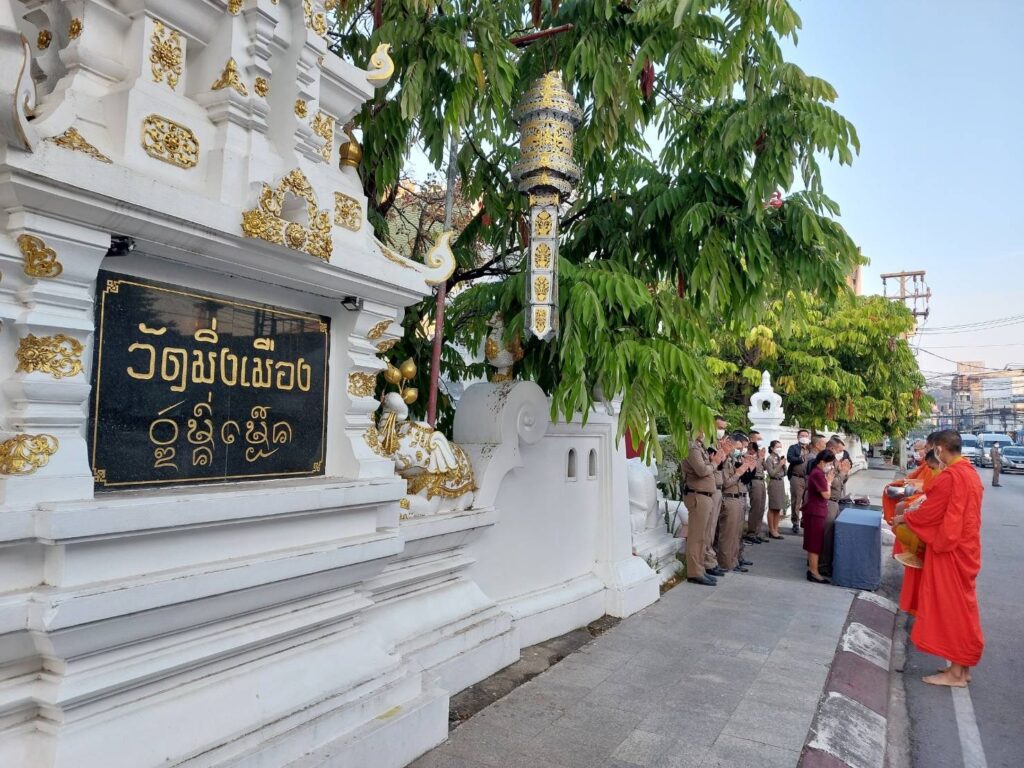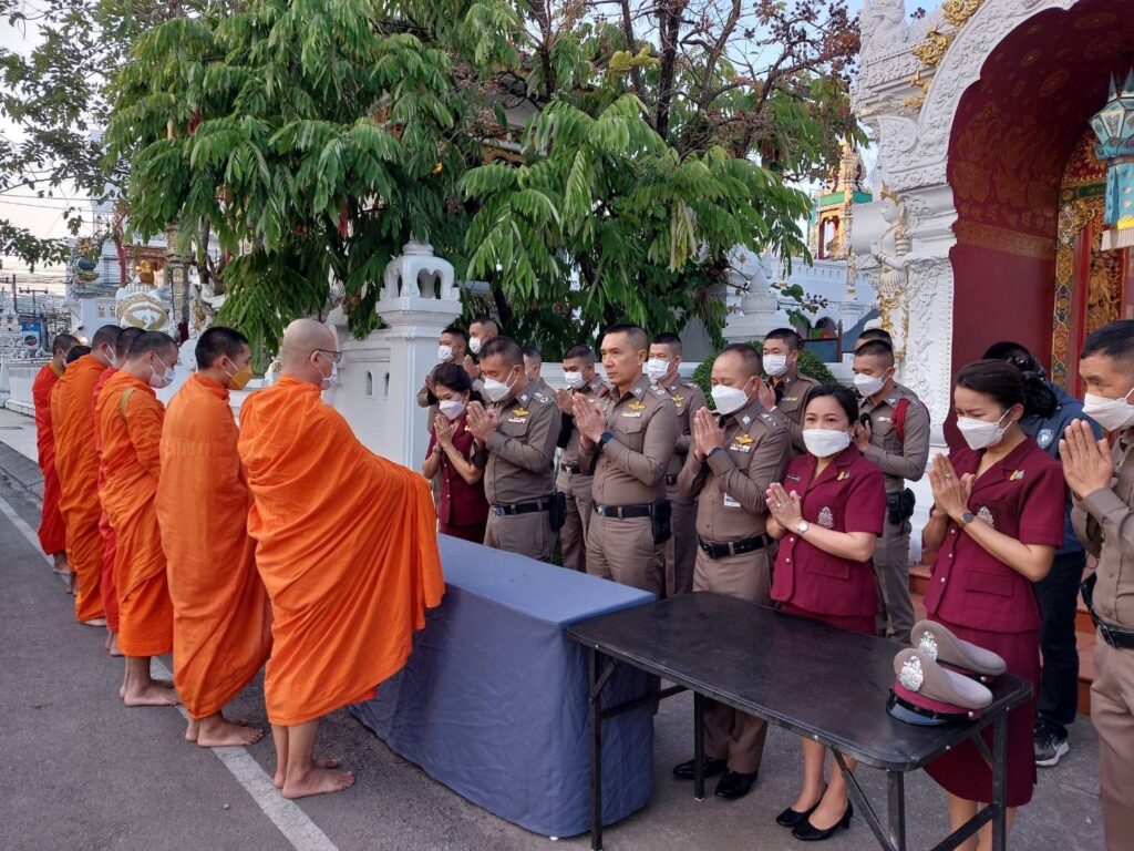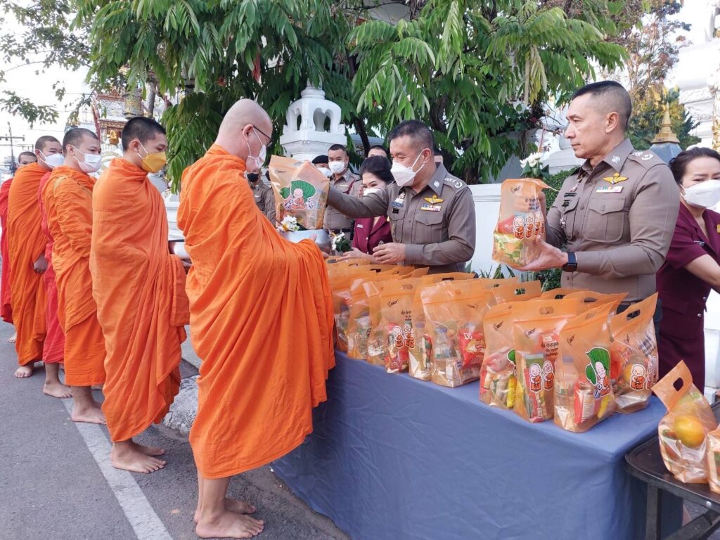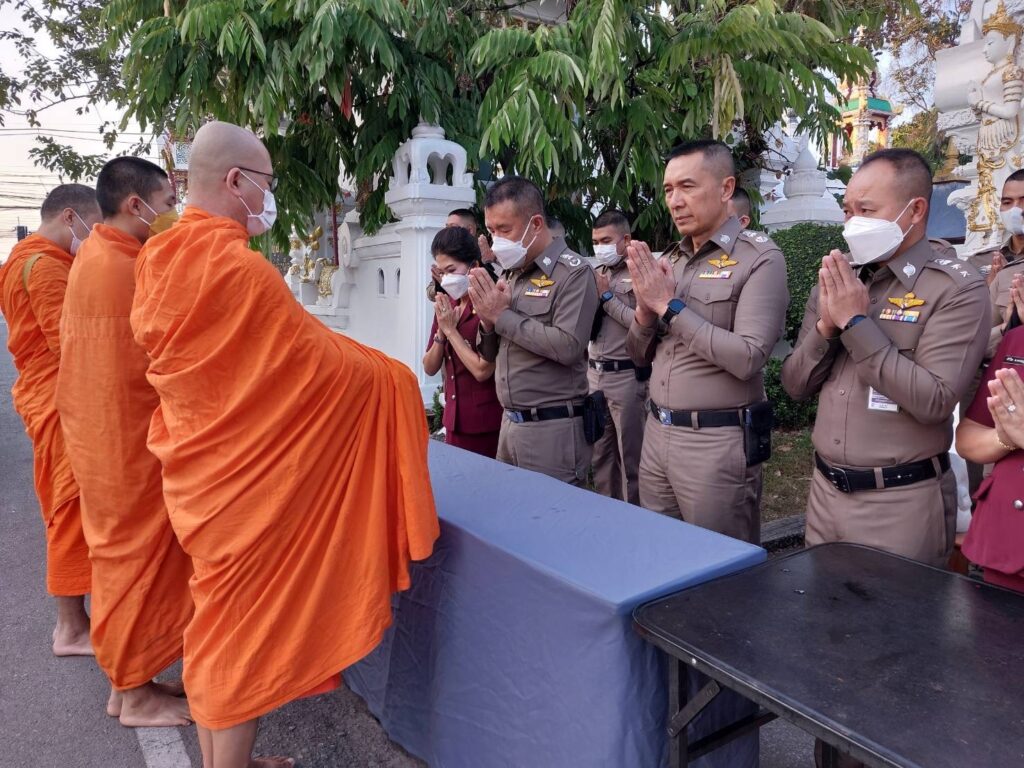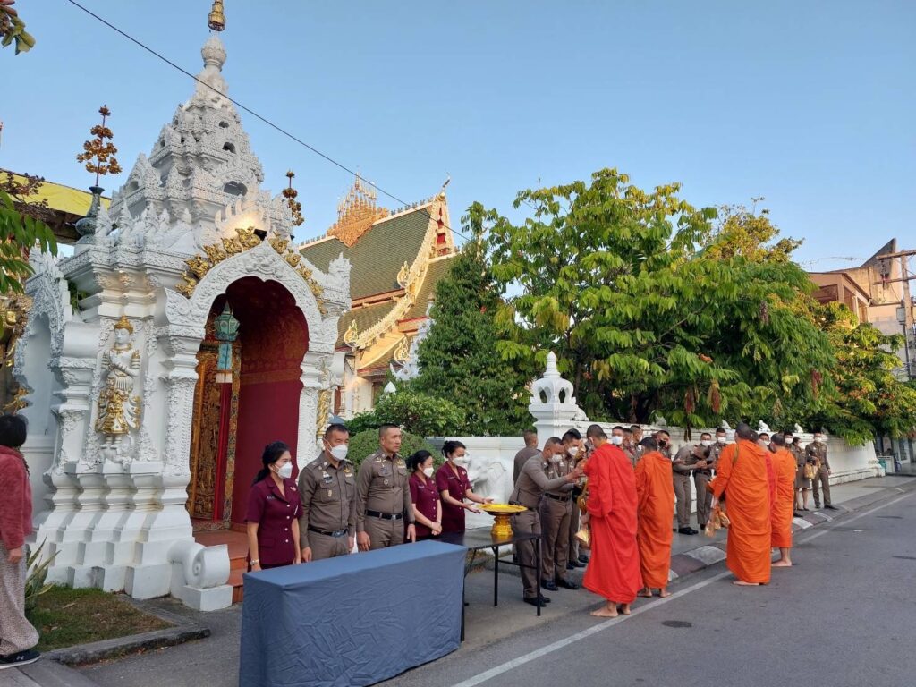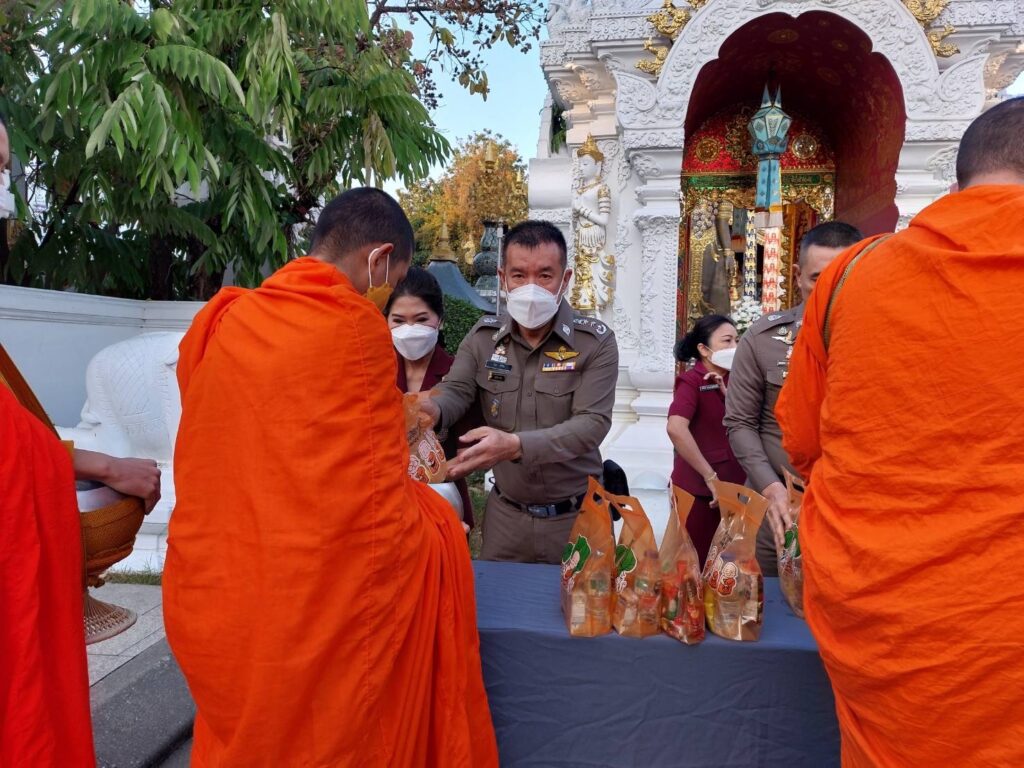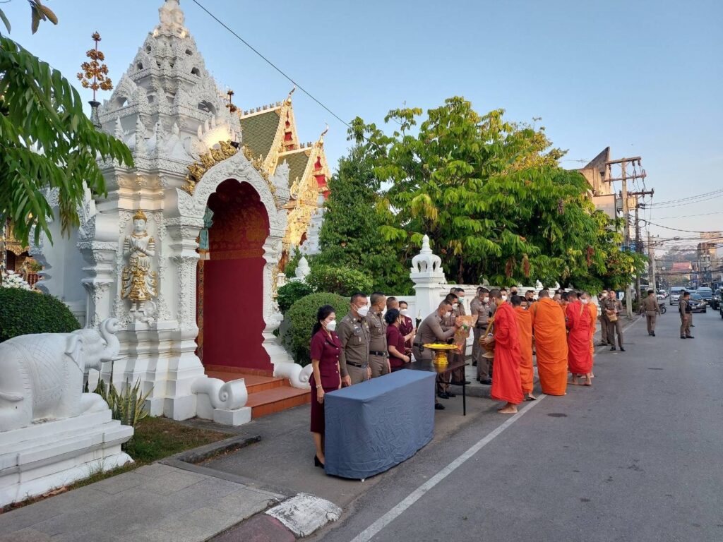 วันนี้ (21 ธ.ค.65) เวลา 07.00 น. พล.ต.ท.ปิยะ ต๊ะวิชัย ผบช.ภ.5 พร้อมด้วย คุณพิยดา ต๊ะวิชัย ประธานชมรมแม่บ้านตำรวจภูธรภาค 5, พล.ต.ต.ดุลเดชา อาชวะสมิตระกูล ผบก.ภ.จว.เชียงราย, นำข้าราชการตำรวจ ภ.จว.เชียงราย, สภ.เมืองเชียงราย และแม่บ้านตำรวจ ร่วมทำบุญตักบาตรพระภิกษุสงฆ์ จำนวน 9 รูป ถวายเป็นพระราชกุศลแด่ สมเด็จพระเจ้าลูกเธอ เจ้าฟ้าพัชรกิติยาภา นเรนทิราเทพยวดี กรมหลวงราชสาริณีสิริพัชร มหาวัชรราชธิดา ณ วัดมิ่งเมือง อ.เมือง จว.เชียงราย เพื่อเป็นการแสดงความจงรักภักดีและสำนึกในพระมหากรุณาธิคุณ ถวายพระพรให้พระองค์ทรงหายจากพระอาการประชวรในเร็ววัน
