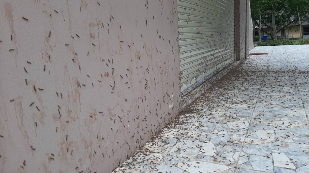 หลังได้รับแจ้งชาวบ้านในละแวกวัดสตูลสันตยาราม(วัดป่าช้าไทย) ต.พิมาน อ.เมือง จ.สตูล ว่ามีหนอนจำนวนมากบุกเข้ามาอยู่ที่กุฏิพระ ภายในวัดสตูลสันตยาราม ผู้สื่อข่าวได้เดินทางไปยังวัดพบมีตัวหนอนลักษณะมีขนรอบตัว ยาวประมาณ 1 นิ้ว ไต๋ยั่วเยี๊ยะบริเวณภายในกุฏิ หลวงพ่อพระวันถาวโร อายุ 90 ปี โดยหลวงตาอาศัยอยู่ในห้อง บริเวณด้านหน้ากุฏิก็มีชาวบ้านช่วยกันกวาดตัวหนอนออก