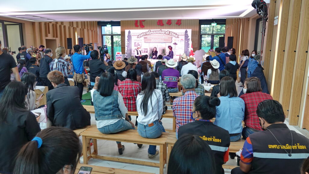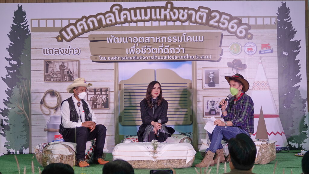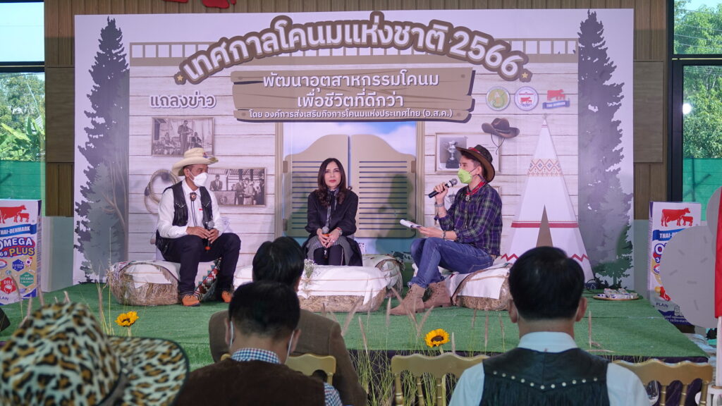 เมื่อเวลา 13.30 น. วันที่ 21 ธันวาคม 2565 ที่องค์การส่งเสริมกิจการโคนมแห่งประเทศไทย ตำบลคลองหนึ่ง อำเภอคลองหลวง จังหวัดปทุมธานี นางสาวมนัญญา ไทยเศรษฐ์ รัฐมนตรีช่วยว่ากระทรวงเกษตรและสหกรณ์ นายสมพร ศรีเมือง ผู้อำนวยองค์การส่งเสริมกิจการโคนมแห่งประเทศไทย (อ.ส.ค.) ร่วมแถลงข่าว เตรียมจัดงาน “เทศกาลโคนมแห่งชาติ ประจำปี 2566 อย่างยิ่งใหญ่ เพื่อน้อมรำลึกถึงพระมหากรุณาธิคุณในหลวงรัชกาลที่ , ที่ทรงพระราชทานอาชีพการเลี้ยงโคนมแก่เกษตรกรไทยและชูศักยภาพการเป็นผู้นำด้านอุตสาหกรรมนมของอาเชียน พร้อมจัดเสวนาถกสถานการณ์อุตสาหกรรมโคนมภายใต้วิกฤติโลกและแนวทางการปรับตัวของภาคเกษตรกรในอนาคตและเปิดตัวผลิตภัณฑ์ใหม่ล่าสุดโยเกิร์ตอบกรอบ โพรไบโอ ตราไทย-เดนมาร์ค ที่เตรียมออกตีตลาดในปีหน้า