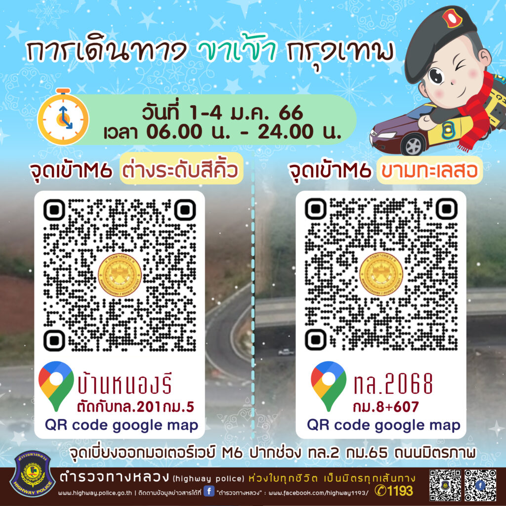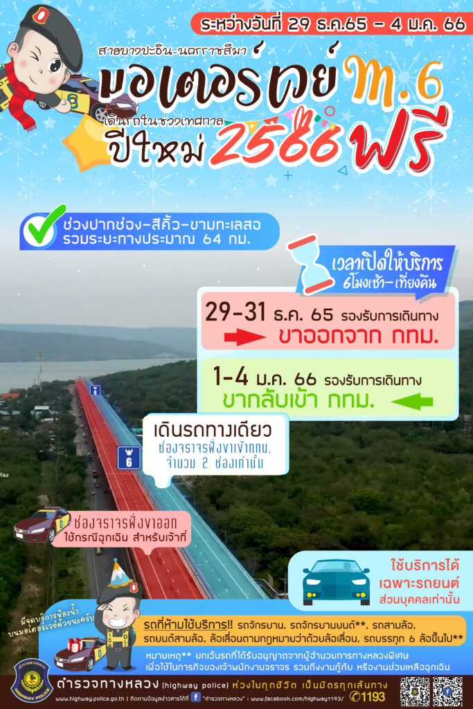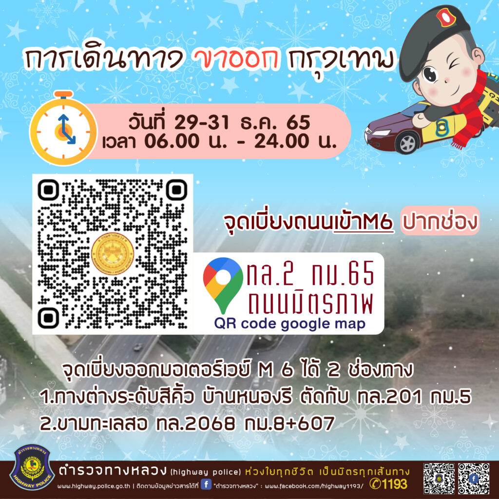 ทั้งนี้ ตำรวจทางหลวง ขอความร่วมมือประชาชนโปรดใช้ความระมัดระวังในการเดินทาง เนื่องจาก มีประชาชนเดินทางเป็นจำนวนมาก ควรปฏิบัติตามป้ายเตือน คำแนะนำของเจ้าหน้าที่อย่างเคร่งครัด เพื่อให้เดินทางได้อย่างปลอดภัย ไร้อุบัติเหตุ กลับถึงบ้านได้อย่างปลอดภัย มีความสุขในช่วงเทศกาลปีใหม่ 2566 นี้ หากต้องการสอบถามเส้นทาง หรือขอความช่วยเหลือ สามารถโทรสายด่วน 1193 ตำรวจทางหลวง ได้ตลอด 24 ชม.