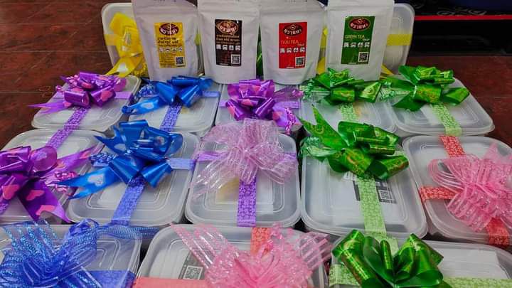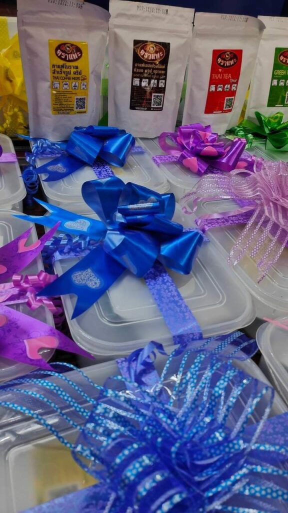 เรามีชุดพิเศษมี ใส่กล่องพลาสติกอย่างสวยหรูติดโบว์ มีซองกาแฟ มีซองชา และชาเขียวไว้ในกล่อง ผูกโบว์เพื่อเป็นของขวัญไปให้กับคนที่เรารักได้เลย