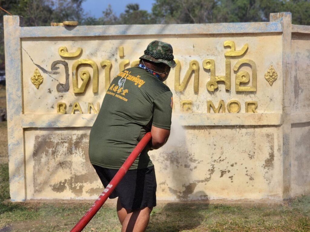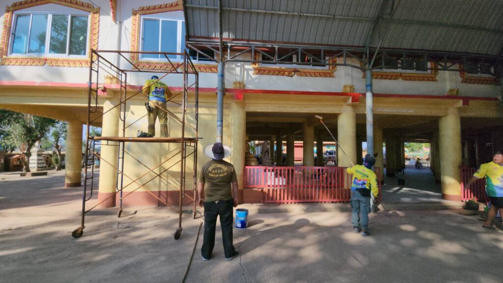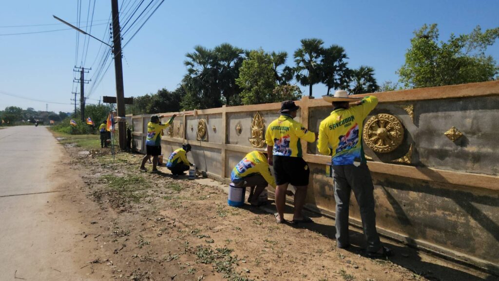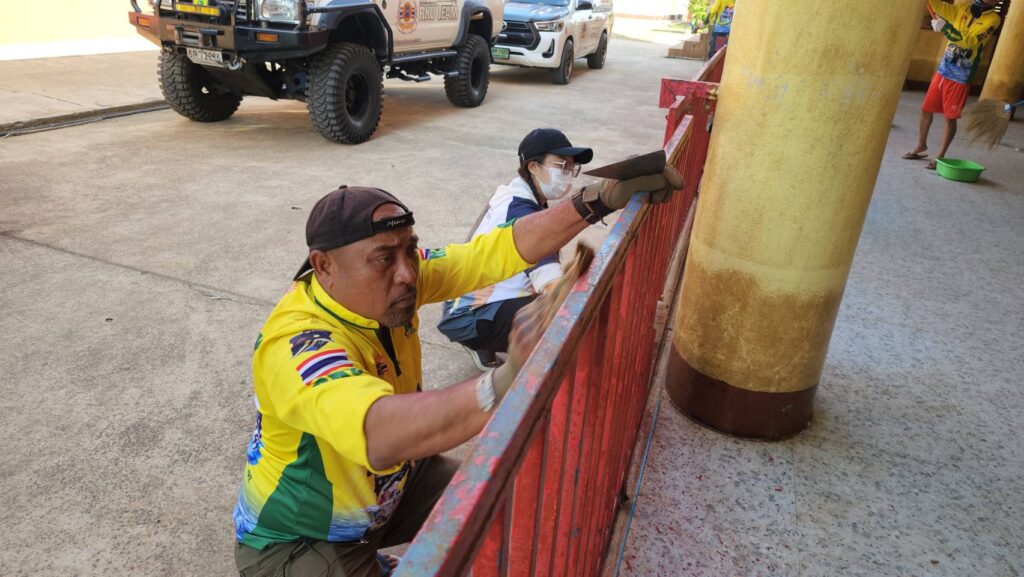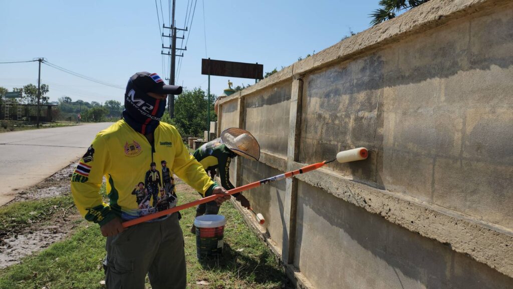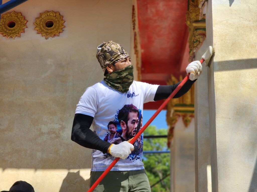พี่บิณฑ์ บรรลือฤทธิ์ นำทีม เจ้าหน้าที่ อาสา มูลนิธิร่วมกตัญญู พร้อมอุปกรณ์ล้างทำความสะอาด อุปกรณ์ขัดทา พร้อมสี จาก TOA และ กัปตัน