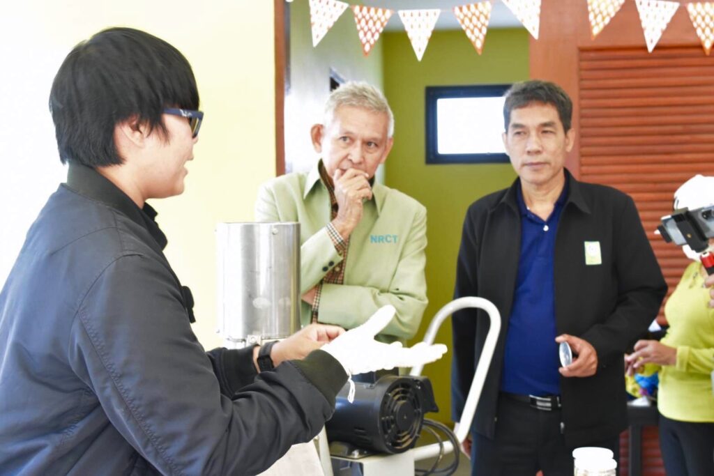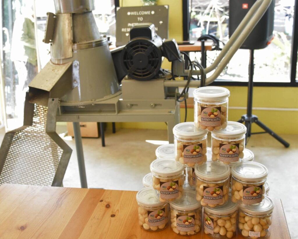 นายธีรวัฒน์ บุญสม ผู้อำนวยการกองส่งเสริมและสนับสนุนการวิจัย กล่าวว่า (วช.) ภายใต้กระทรวง (อว.) เป็นหน่วยงานหลักที่ให้การสนับสนุนทุนวิจัย พัฒนาบุคลากร ด้วยงานวิจัยและนวัตกรรม ซึ่งจากผลสำเร็จของโครงการเพิ่มศักยภาพการผลิตและยกระดับรายได้ชุมชนด้วยนวัตกรรมเครื่องสีเปลือกแมคคาเดเมีย ที่ได้รับทุนสนับสนุนจาก (วช.) ได้เกิดผลผลิตที่สำคัญสู่การผลักดันให้เกิดผลิตภัณฑ์ที่สามารถจำหน่ายได้ในเชิงพาณิชย์และขยายผลสู่วงกว้างจากองค์ความรู้และผลิตภัณฑ์ต้นแบบที่ได้รับการพัฒนามาขยายผลต่อยอดสู่วิสาหกิจชุมชนที่มีศักยภาพ พร้อมทั้งใช้องค์ความรู้ที่มีอยู่ในการผลักดันให้เกิดผลิตภัณฑ์มูลค่าในรูปแบบ ผลิตภัณฑ์ แมคคาเดเมีย แกะเปลือก อบธรรมชาติ บรรจุกระป๋องซีล ผลักดันพื้นที่ต้นแบบชุมชนเศรษฐกิจฐานรากชุมชนเข้มแข็งอย่างยั่งยืนต่อไป