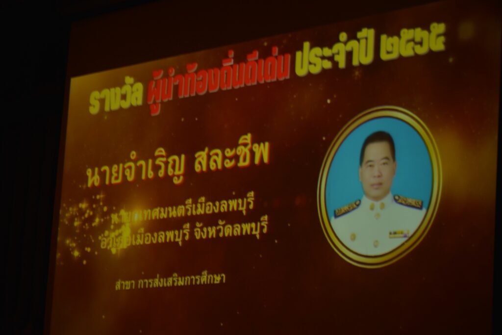 เมื่อวันที่ ๒๓ ธันวาคม ๒๕๖๕ นายจำเริญ สละชีพ นายกเทศมนตรีเมืองลพบุรี เข้ารับรางวัล ผู้นำท้องถิ่นดีเด่น ประจำปี ๒๕๖๕ สาขา การส่งเสริมการศึกษา โครงการหนึ่งล้านกล้าความดีตอบแทนคุณแผ่นดิน มูลนิธิเพื่อสังคมไทย พิธีมอบรางวัลไทย รางวัลเกียรติยศ บนเส้นทางชีวิต ประจำปี ๒๕๖๕ ณ ห้องประชุมชัยพฤกษ์ ๒ หอประชุมกองทัพอากาศ ถนนพหลโยธิน เขตสายไหม กรุงเทพมหานคร โดยมี พลอากาศเอก ชลิต พุกผาสุข องคมนตรี/กรรมการและเลขาธิการมูลนิธิพระดาบส เป็นประธานในพิธี