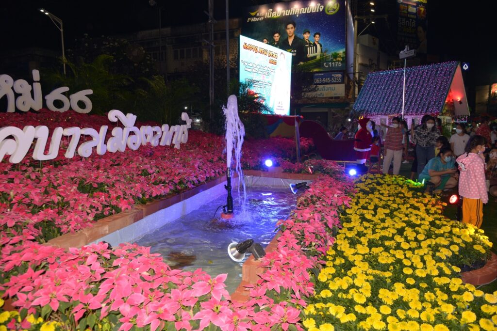 เมื่อวันที่ ๒๕ ธันวาคม ๒๕๖๕ นายจำเริญ สละชีพ นายกเทศมนตรีเมืองลพบุรี เปิดสวนปีใหม่ ที่บริเวณวงเวียนศรีสุริโยทัย หรือ วงเวียนสระแก้ว เพื่อให้ประชาชนและนักท่องเที่ยวออกมาชมความสวยงาม และถ่ายภาพแห่งความประทับใจ ไฟประดับต้นคริสต์มาส สวนไม้ดอกไม้ประดับ อุโมงค์ไฟ แสง สี และหิมะเทียม เพื่อส่งความสุขให้กับประชาชนในช่วงเทศกาลปีใหม่ มีการมอบของขวัญ อาหาร เครื่องดื่ม ฟรี โดยมีประชาชนและนักท่องเที่ยว ให้ความสนใจเที่ยวชมกันเป็นจำนวนมาก