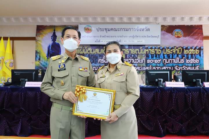 วันที่ 26 ธันวาคม 2565 เวลา 09.00 น. นางอรพิน จิระพันธุ์วาณิช นายกองค์การบริหารส่วนจังหวัดลพบุรี ได้เข้ารับมอบเกียรติบัตร จากนายอำพล อังคภากรณ์กุล ผู้ว่าราชการจังหวัดลพบุรี เนื่องด้วยองค์การบริหารส่วนจังหวัดลพบุรีได้ให้การสนับสนุนกิจกรรมกำจัดผักตบชวาและวัชพืชในแหล่งน้ำสาธารณะ ณ อ่างเก็บน้ำห้วยส้ม ตำบลโคกตูม อำเภอเมืองลพบุรี จังหวัดลพบุรี ในระหว่างวันที่ 2 – 6 ธันวาคม 2565