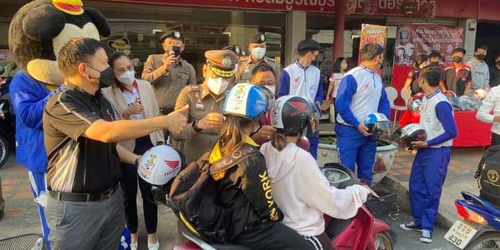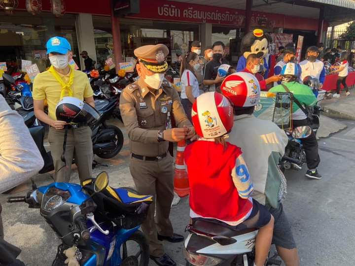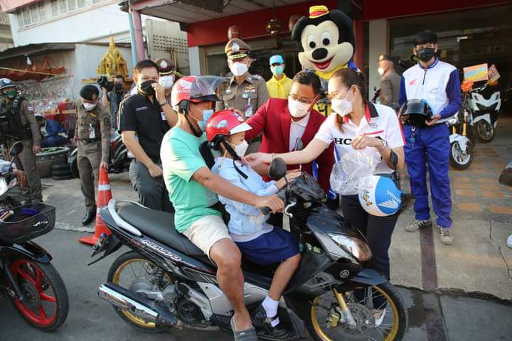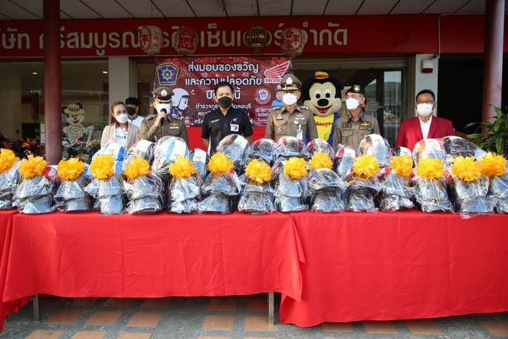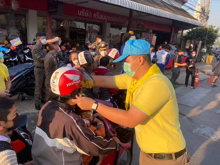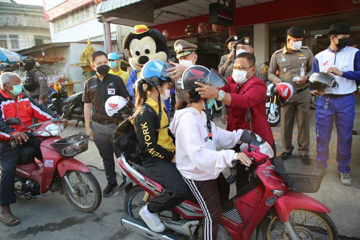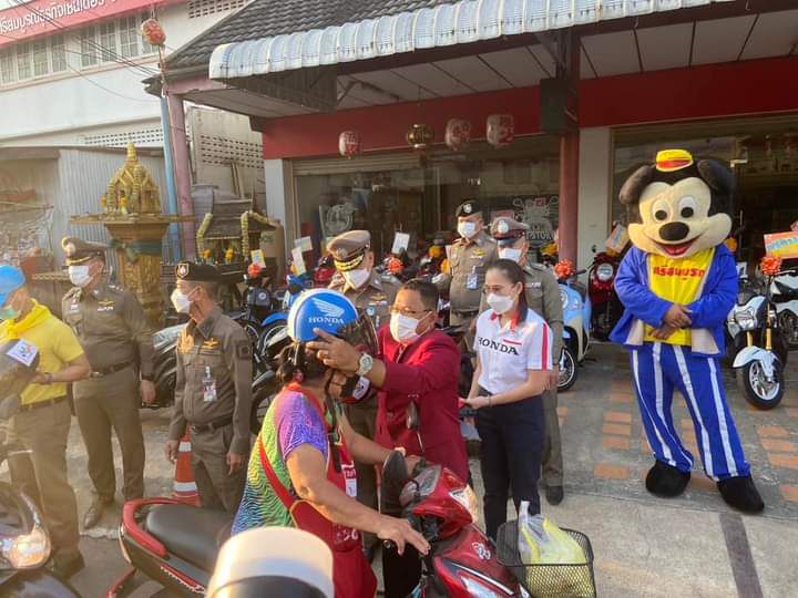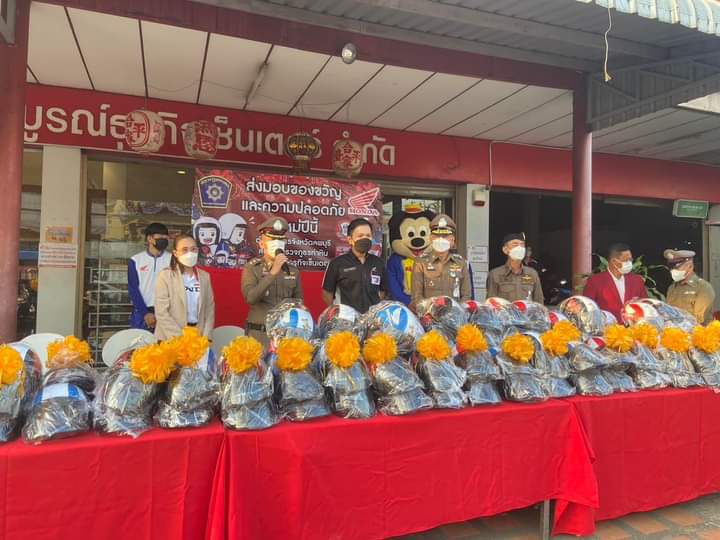 มอบหมวกกันน็อค เพื่อเป็นของขวัญปีใหม่ให้ผู้ขับขี่พาหนะให้กับประชาชนชาวลพบุรี