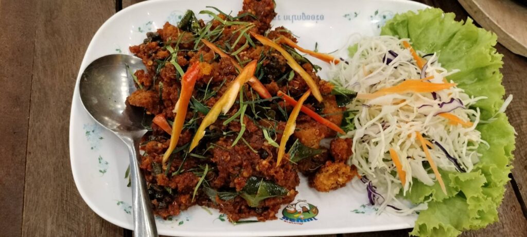 ปลาช่อนกรอบผัดพริกขิงโบราณาหารแนะนำ