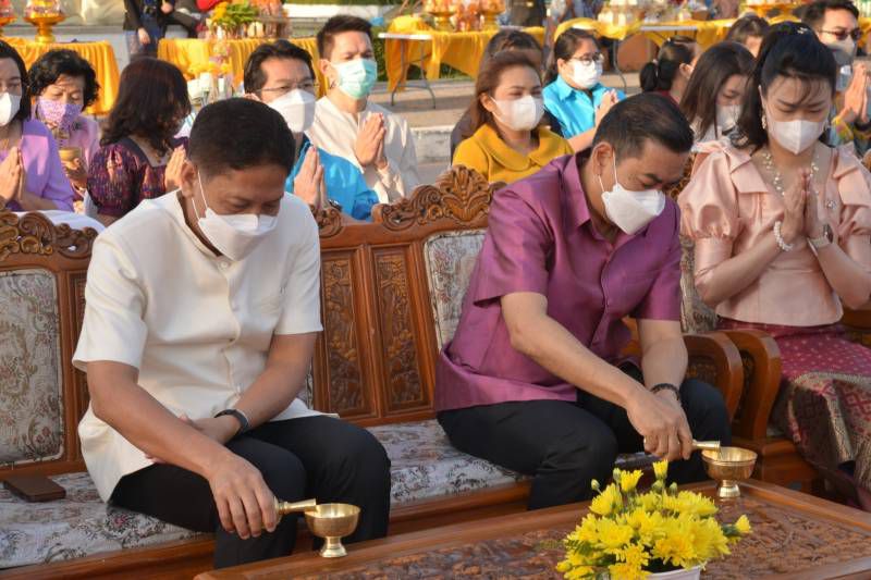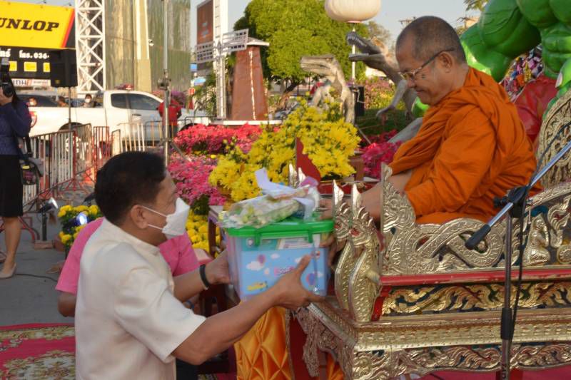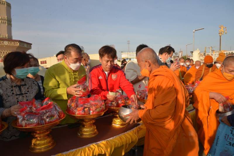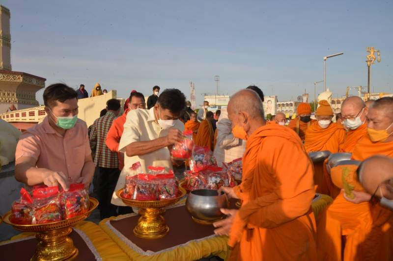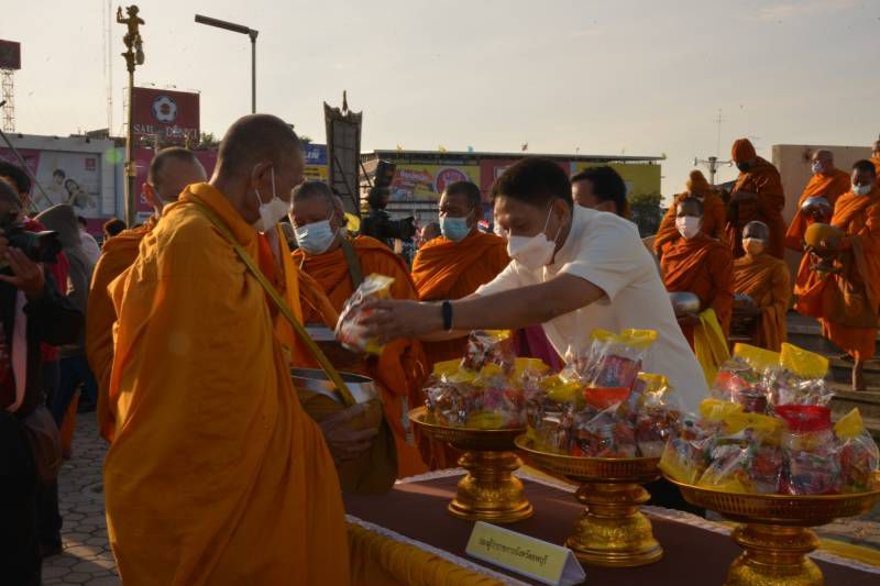 เมื่อช่วงเช้าของวันที่ ๓๑ ธันวาคม ๒๕๖๕ ที่บริเวณวงเวียนศรีสุริโยทัย หรือวงเวียนสระแก้ว นายจำเริญ สละชีพ นายกเทศมนตรีเมืองลพบุรี ได้จัดให้มีพิธีตักบาตรข้าวสารอาหารแห้งเนื่องในวันส่งท้ายปีเก่า โดยมี นายวชิระ เกตุพันธุ์ รองผู้ว่าราชการจังหวัดลพบุรี เป็นประธานพิธี พร้อมด้วย ข้าราชการ ทหาร ตำรวจ ประชาชน ร่วมตักบาตรข้าวสารอาหารแห้ง โดยมี พระเทพเสนาบดี เจ้าอาวาสวัดกวิศรารามราชวรวิหาร เจ้าคณะจังหวัดลพบุรี แสดงสัมโมทนียกถา พร้อมประพรมน้ำพระพุทธมนต์แก่พุทธศาสนิกชนที่มาร่วมพิธีทำบุญตักบาตร และมอบข้าวสาร และปฏิทินของเทศบาลเมืองลพบุรี เพื่อเป็นของขวัญวันปีใหม่ แก่ผู้เข้าร่วมพิธีฯ