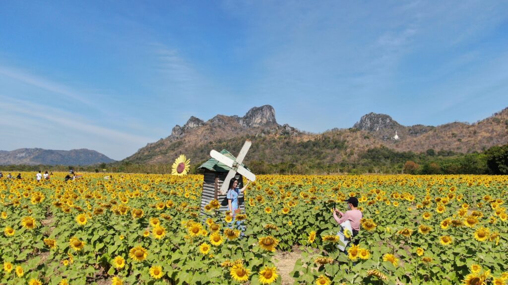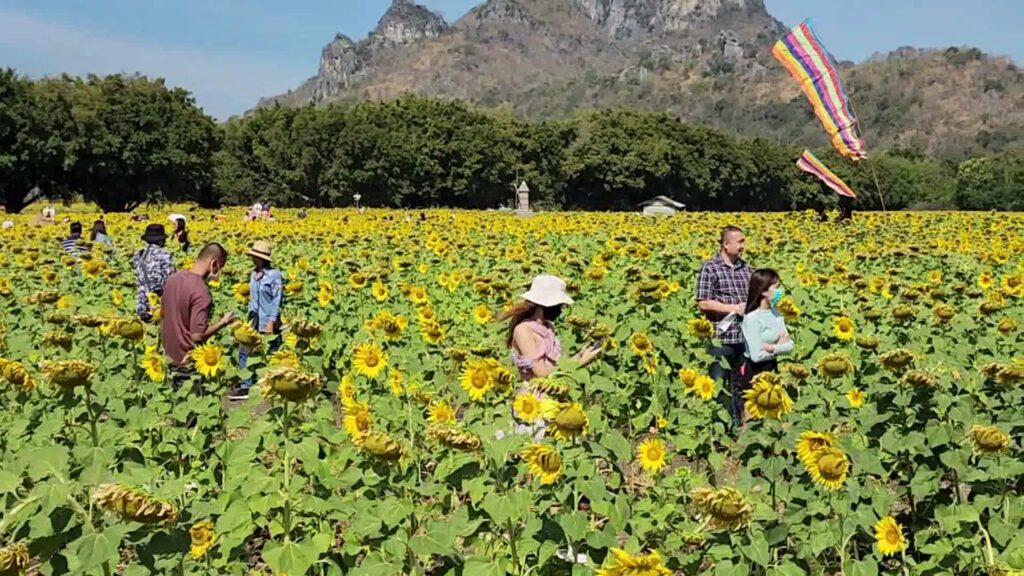 ที่ สนามฝึกกระโดดร่มทางยุทธวิธี ของทหารรบพิเศษ ตำบลนิคมสร้างตนเอง อำเภอเมือง จังหวัดลพบุรี ขณะนี้ ศูนย์สงครามพิเศษ ได้เปิดเป็นแหล่งท่องเที่ยวในพื้นที่ทหาร เพื่อเติมความสุขให้แก่ประชาชน หลังสถานการณ์โควิด 19 ในพื้นที่เริ่มผ่อนคลาย เพื่อมอบเป็นของขวัญปีใหม่ แก่ประชาชน ด้วยการเที่ยวชมทุ่งทานตะวันแปลงใหญ่ บริเวณเทือกเขาจีนแล ซึ่งกำลังออกดอกบานสะพรั่ง ต้อนรับปีพุทธศักราชใหม่ 2566 บรรยากาศตลอดทั้งวันเป็นไปอย่างคึกคัก ทามกลางมาตรการ การดูแลนักท่องเที่ยวเป็นอย่างดี โดยได้มีประชาชนและนักท่องเที่ยวจำนวนมากต่างพากันเดินทางมาพักผ่อนและท่องเที่ยวถ่ายภาพแห่งความประทับใจ และชมความงามของทุ่งทานตะวันบาน ณ สนามโดดร่มแห่งนี้ ที่กำลังออกดอกสีเหลืองบานสะพรั่งอย่างสวยงามบนเนื้อที่กว่า 200 ไร่ ที่ลายล้อมไปด้วยภูเขาที่โดดเด่นเป็นฉากหลังของทุ่งทานตะวันอย่างสวยงาม และถือได้ว่าเป็นทุ่งทานตะวันแปลงใหญ่ในพื้นที่ “เขตทหาร”ที่สวยที่สุดแห่งเดียวของประเทศไทย