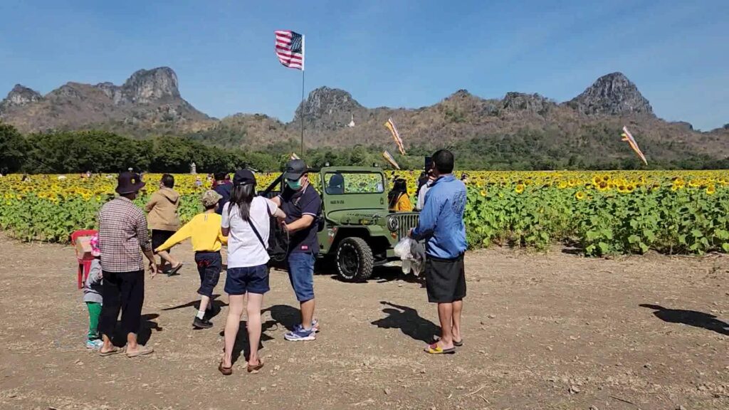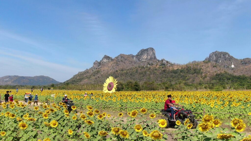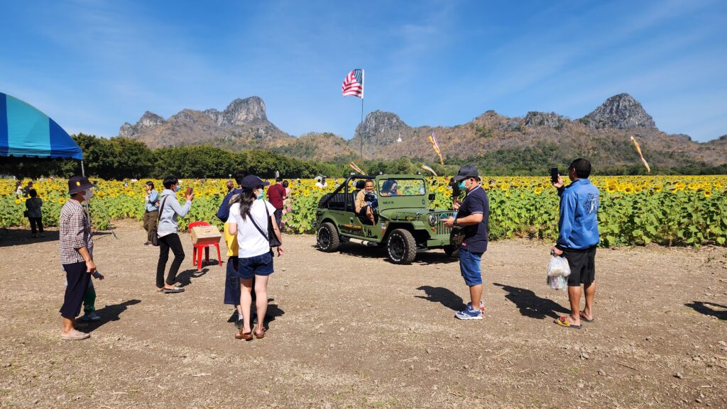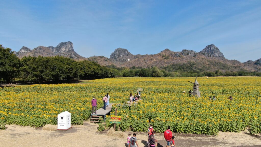 โดยทางศูนย์สงครามพิเศษ ซึ่งเป็นเจ้าของพื้นที่ ได้ใช้พื้นที่ดังกล่าวซึ่งว่างเว้นจากการฝึก ปลูกทานตะวันเพื่อการท่องเที่ยว พร้อมจัดเจ้าหน้าที่ทหารมาคอยอำนวยความสะดวกในด้านการจราจรและดูแลความปลอดภัยให้กับนักท่องเที่ยวที่เดินทางมาเที่ยวชมทุ่งทานตะวันแห่งนี้ ทำให้นักท่องเที่ยวต่างพูดเป็นเสียงเดียวกันว่าสวยงามมากๆ และมั่นใจการดูแลความปลอดภัยให้แก่นักท่องเที่ยว ได้อย่างเหมาะสม โดยทุ่งทานตะวันบานแห่งนี้จะออกดอกบานสะพรั่ง ต้อนรับนักท่องเที่ยวต่อเนื่อง ไปจนถึงวันที่ 10 มกราคม 2566 ปีใหม่นี้ ใครยังไม่ได้แพลนไปท่องเที่ยว ศูนย์สงครามพิเศษ ก็เชิญท่องเที่ยวทุ่งทานตะวันแปลงใหญ่ในเขตทหาร ที่ สนามการโดดร่ม เขาจีนแล ซึ่งเปิดให้นักท่องเที่ยวได้เข้าเที่ยวชมกันอย่างจุใจ ตลอดทั้งวัน ถือเป็นการ “มอบของขวัญปีใหม่ให้แก่ ประชาชน จากใจทหาร ” โดยภายในพื้นที่จัดงาน หน่วยยังเปิดโอกาส ร้านค้าต่างๆ ผลิตภัณฑ์ชุมชน เข้ามาจำหน่ายสินค้า ให้แก่นักท่องเที่ยวได้เลือกซื้อสินค้า เพื่อเป็นการกระตุ้นเศรษฐกิจด้านการท่องเที่ยวอีกทางหนึ่งด้วย