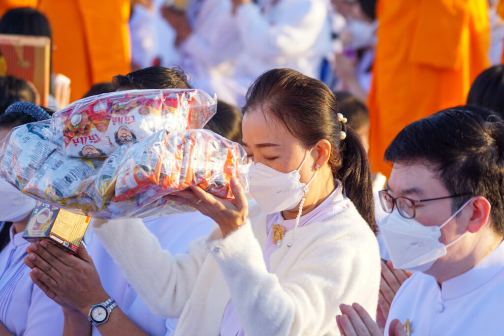วันที่ 1 มกราคม 2566 ที่ลานธรรมพระมหาธรรมกายเจดีย์ วัดพระธรรมกาย ตำบลคลองสาม อำเภอคลองหลวง จังหวัดปทุมธานี พุทธศาสนิกชนร่วมบุญในพิธีตักบาตรพระสงฆ์ 3,000 รูป ต้อนรับศักราชใหม่ เพื่อถวายเป็นพระราชกุศล และถวายพระพรชัยมงคลแด่สมเด็จพระเจ้าลูกเธอ เจ้าฟ้าพัชรกิติยาภา นเรนทิราเทพยวดี กรมหลวงราชสาริณีสิริพัชร มหาวัชรราชธิดา ให้พระองค์ทรงหายจากพระอาการประชวรโดยเร็วพลัน และเป็นสิริมงคลแก่ประเทศชาติและประชาชนชาวไทย