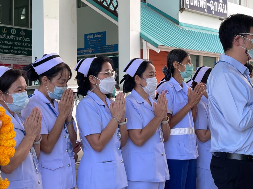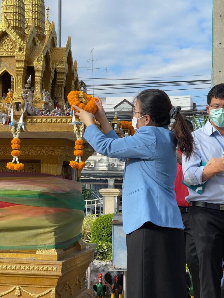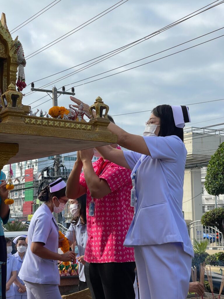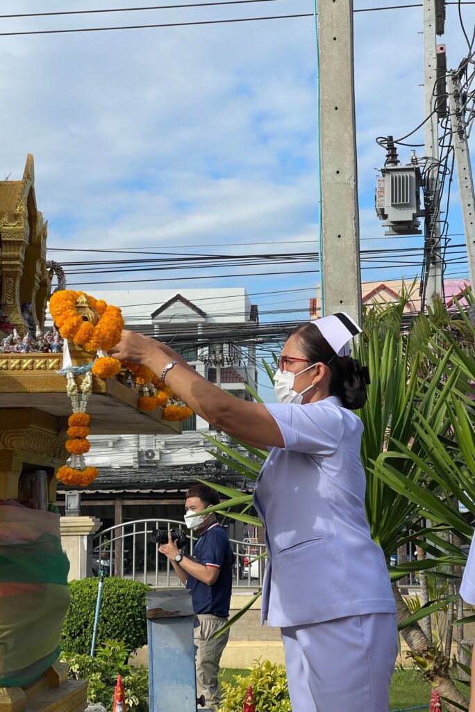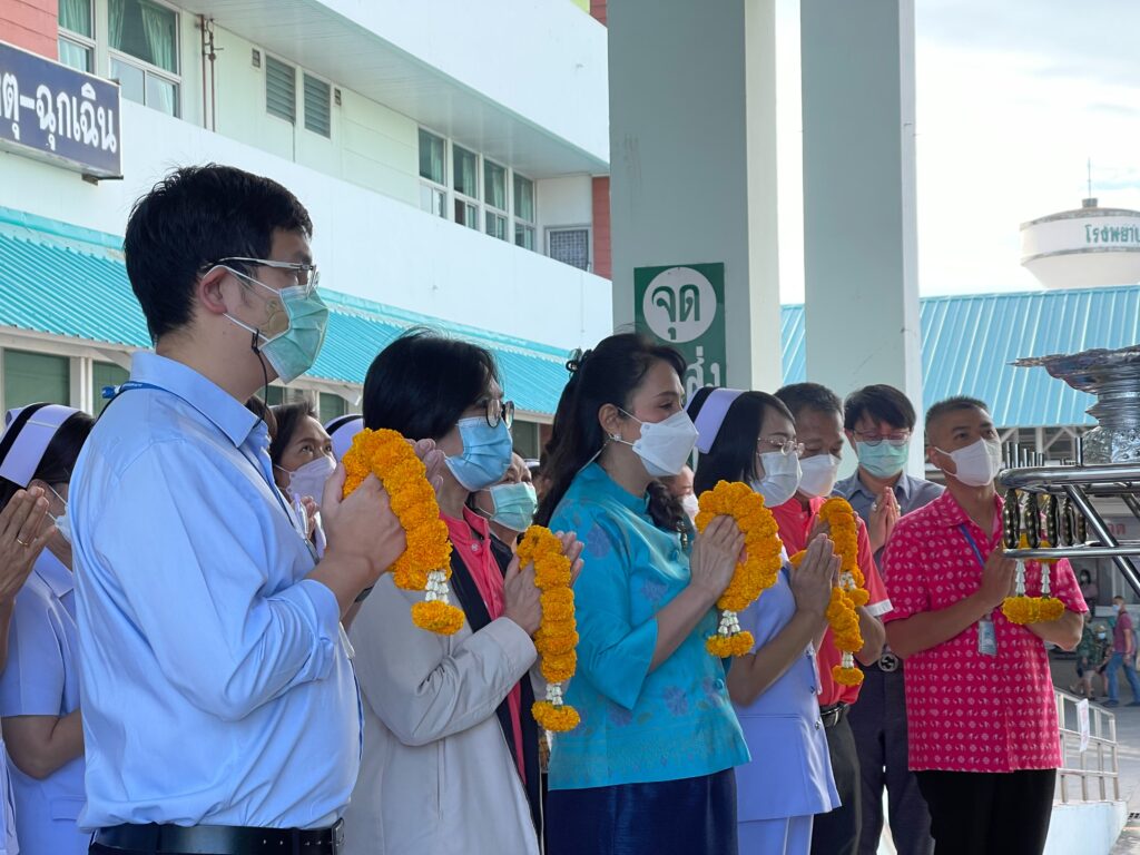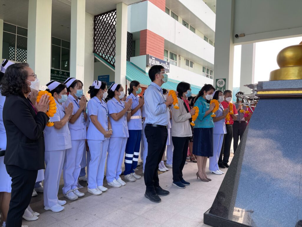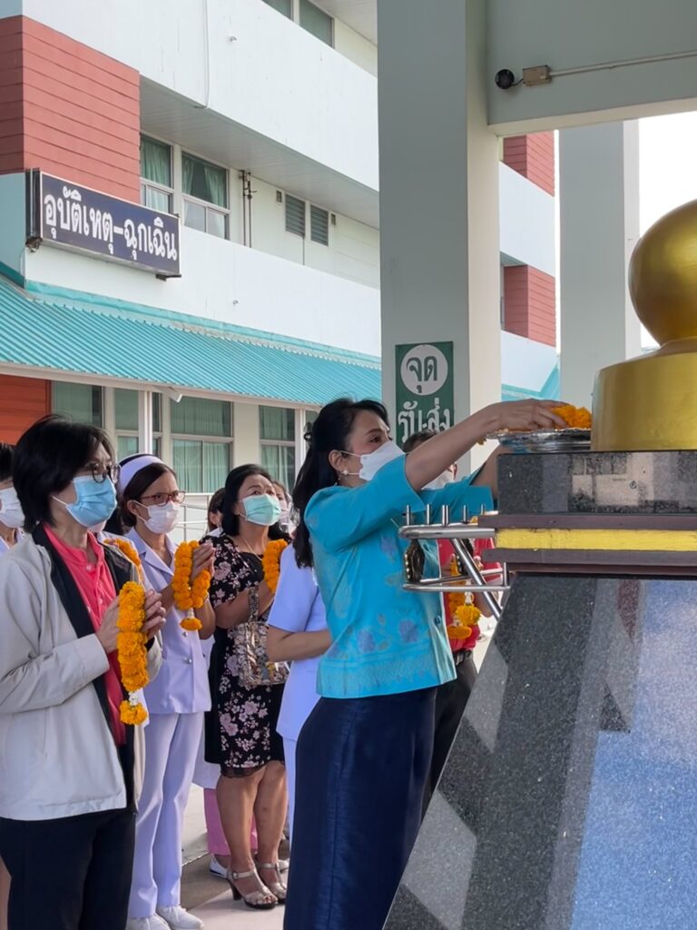 วันที่ 3 มกราคม 2566 แพทย์หญิง นุชรินทร์ อักษรดี ผู้อำนวยการโรงพยาบาลพระนารายณ์มหาราช พร้อมด้วยคณะผู้บริหารและบุคลากร ร่วมสักการะสิ่งศักดิ์สิทธิ์ประจำโรงพยาบาลพระนารายณ์มหาราช โดยนำพวงมาลัยกราบไหว้พระพุทธพิทักษไทยทศทิศ ณ บริเวรหน้าอาคารเฉลิมพระเกียรติ 7 รอบพระชนมพรรษาและนำของไหว้ศาลพระภูมิเจ้าที่ เพื่อเป็นการขอพรเสริมความเป็นสิริมงคลให้กับชีวิตของบุคลากรในโรงพยาบาลพระนารายณ์มหาราชทุกคนให้มีความเจริญรุ่งเรืองในชีวิตและหน้าที่การงานตลอดในปีนี้