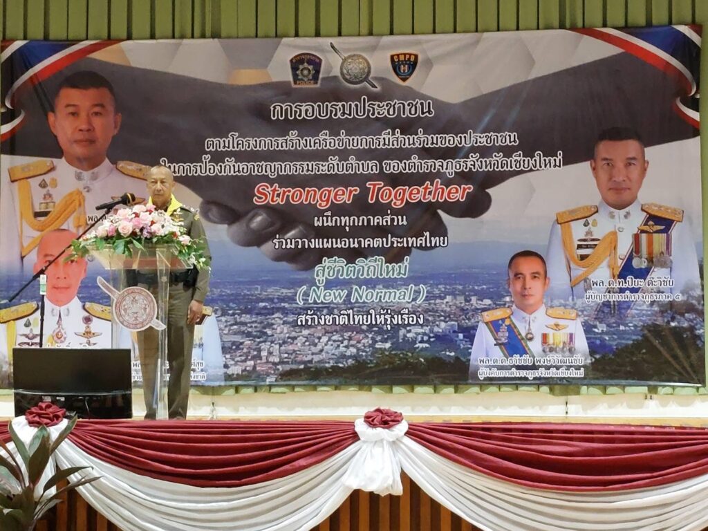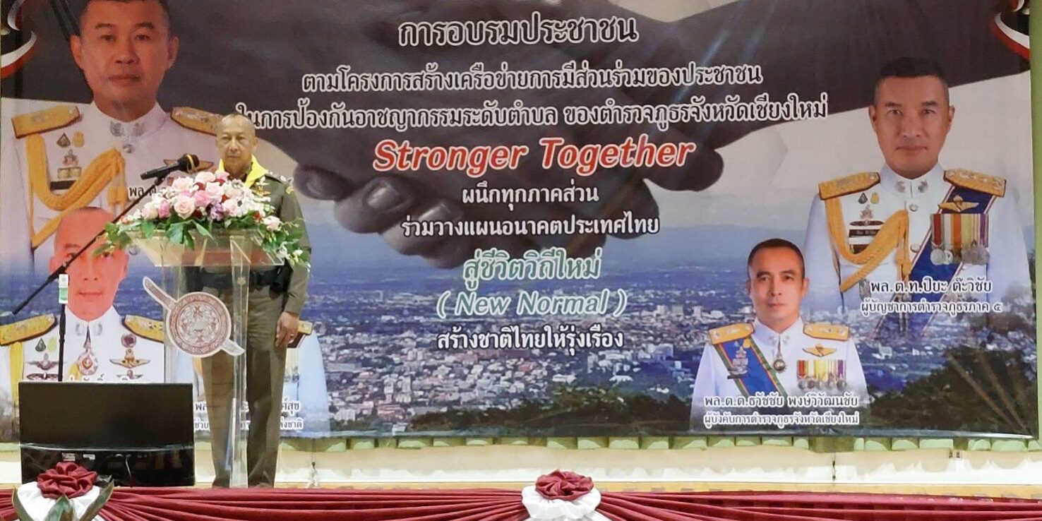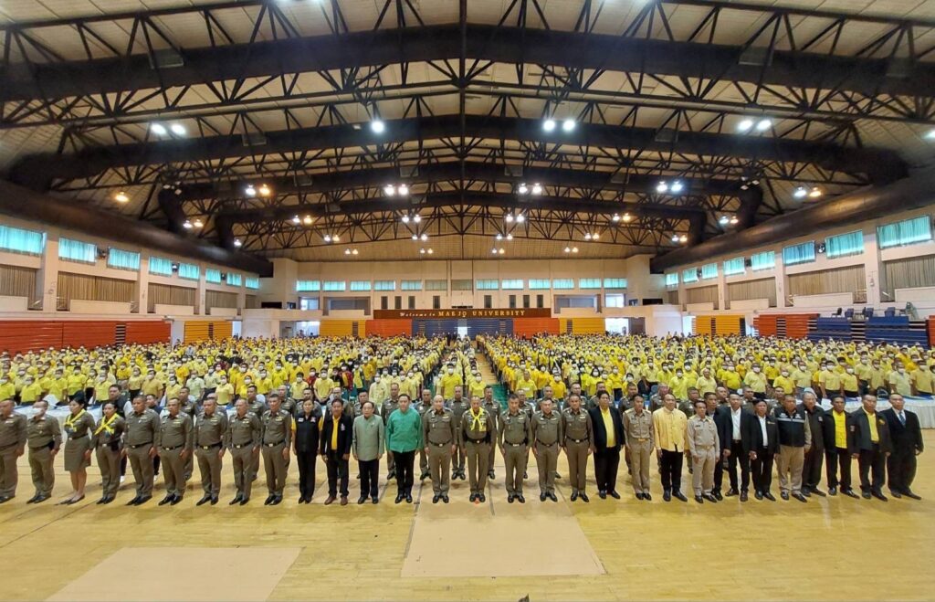 พล.ต.อ.ต่อศักดิ์ สุขวิมล รอง ผบ.ตร. เป็นประธานพิธีเปิดการฝึกอบรมตามโครงการสร้างเครือข่ายการมีส่วนร่วมของประชาชน ในการป้องกันอาชญากรรมระดับตำบล รุ่นที่1 ประจำปีงบประมาณ พ.ศ.2566 เพื่อให้ประชาชนภาคีเครือข่ายที่เข้ารับการอบรมได้เข้าใจแนวทางและสามารถดำเนินการตามแนวทางของโครงการฯ ได้อย่างมีประสิทธิภาพและสัมฤทธิ์ผล โดยมี พล.ต.ท.ประจวบ วงศ์สุข ผู้ช่วย ผบ.ตร. พร้อมด้วย พล.ต.ท.ปิยะ ต๊ะวิชัย ผบช.ภ.5, พล.ต.ต.เฉลิมพล จินตรัตน์ รอง ผบช.ภ.5, พล.ต.ต.พฤทธิพงษ์ ประยูรศิริ รอง ผบช.ภ.5, พล.ต.ต.วีรชน บุญทวี รอง ผบช.ภ.5, พล.ต.ต.ธวัชชัย พงษ์วิวัฒนชัย ผบก.ภ.จว.เชียงใหม่, นายนิรัตน์ พงษ์สิทธิถาวร ผู้ว่าราชการจังหวัดเชียงใหม่, รศ.ดร.วีระพล ทองมา อธิบดี ม.แม่โจ้, หัวหน้าสถานีตำรวจในสังกัด ภ.จว.เชียงใหม่ จำนวน 23 สถานี, อบต., กต.ตร. และประชาชนภาคีเครือข่าย จำนวนรวม 1,150 คน เข้าร่วมพิธีเปิด ณ อาคารศูนย์กีฬาเฉลิมพระเกียรติ มหาวิทยาลัยแม่โจ้ อ.สันทราย จว.เชียงใหม่