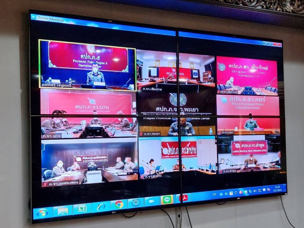พล.ต.ท.ปิยะ ต๊ะวิชัย ผบช.ภ.5 พร้อมด้วย พล.ต.ต.กฤตธาพล ยี่สาคร รอง ผบช.ภ.5, พ.ต.อ.ไพศาล นันตา รอง ผบก.ภ.จว.เชียงใหม่ และเจ้าหน้าที่ที่เกี่ยวข้อง ร่วมประชุมศูนย์อำนวยการป้องกันและลดอุบัติเหตุทางถนนช่วงเทศกาลปีใหม่ พ.ศ.2566 ผ่านระบบทางจอภาพ (VDO Conference) โดยมี พล.ต.ท.ประจวบ วงศ์สุข ผู้ช่วย ผบ.ตร.เป็นประธานการประชุม ณ ห้องประชุม1 ภ.5 อ.เมือง จว.เชียงใหม่ และมี ผบก.ภ.จว. ทั้ง 8 จว.ร่วมประชุมทางไกลผ่านระบบจอภาพ ณ ที่ตั้งหน่วย