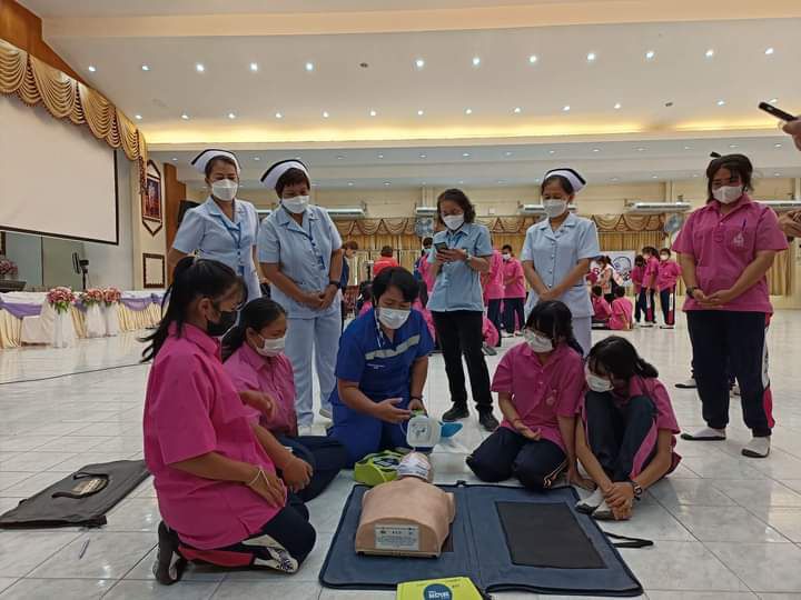 แพทย์หญิงนุชรินทร์ อักษรดี ผู้อำนวยการโรงพยาบาลพระนารายณ์มหาราช มอบหมายคุณมารยาท รัตนประทีป รองผู้อำนวยการฝ่ายการพยาบาลและทีมกลุ่มภารกิจด้านการพยาบาลจัดกิจกรรมสอนการช่วยฟื้นคืนชีพ (CPR) แก่นักเรียนชั้นมัธยมศึกษาปีที่ 2 โรงเรียนเมืองใหม่ (ชลอราษฎร์รังสฤษฏ์) เนื่องในวันเด็กแห่งชาติประจำปี 2566