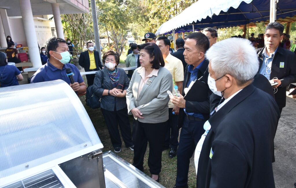 สำหรับพิธีส่งมอบนวัตกรรมในครั้งนี้ มีสมาชิกหมู่บ้านและเกษตรกรที่เข้าร่วมโครงการฯ ในพื้นที่เข้าร่วมงานกว่า 300 คน โดยผลงานนวัตกรรมที่ (กอ.รมน.) ร่วมกับ (วช.) นำมาส่งมอบให้กับพื้นที่ตำบลบ้านขอ อำเภอเมืองปาน จังหวัดลำปาง จำนวน 13 หมู่บ้าน ได้แก่ รถเข็นสูบน้ำพลังงานเซลล์แสงอาทิตย์ จำนวน 13 เครื่อง สถานีสูบน้ำพลังงานเซลล์แสงอาทิตย์แบบลอยน้ำ จำนวน 1 สถานี เครื่องอบลมร้อนอเนกประสงค์พลังงานเซลล์แสงอาทิตย์เคลื่อนที่ได้ จำนวน 3 เครื่อง และ สถานที่แปรรูปผลผลิตทางการเกษตรตามมาตรฐาน GMP จำนวน 1 โรงงาน และนวัตกรรมที่ส่งมอบให้กับพื้นที่จังหวัดสุโขทัย ได้แก่ รถเข็นสูบน้ำพลังงานเซลล์แสงอาทิตย์ จำนวน 12 เครื่อง สถานีสูบน้ำพลังงานเซลล์แสงอาทิตย์แบบติดตั้งบนบก จำนวน 1 สถานีเครื่องอบลมร้อนอเนกประสงค์พลังงานเซลล์แสงอาทิตย์เคลื่อนที่ได้ จำนวน 3 เครื่อง เครื่องอัดเม็ดปุ๋ยอินทรีย์ จำนวน 1 เครื่อง พร้อมผลิตภัณฑ์ต้นแบบ แพลตฟอร์มการบริหารจัดการกลุ่มอาชีพ และสื่อประชาสัมพันธ์และส่งเสริมการตลาด และส่งมอบนวัตกรรมให้กับพื้นที่ตำบลท่าฉนวน อำเภอกงไกรลาศ จังหวัดสุโขทัย จำนวน 12 หมู่บ้าน ได้แก่ รถเข็นสูบน้ำพลังงานเซลล์แสงอาทิตย์ จำนวน 12 เครื่อง สถานีสูบน้ำพลังงานเซลล์แสงอาทิตย์แบบติดตั้งบนบก จำนวน 1 สถานี เครื่องอบลมร้อนอเนกประสงค์พลังงานเซลล์แสงอาทิตย์เคลื่อนที่ได้ จำนวน 3 เครื่อง เครื่องอัดเม็ดปุ้ยอินทรีย์ จำนวน 1 เครื่อง สถานที่แปรรูปผลผลิตทางการเกษตรตามมาตรฐาน GMP จำนวน 1 โรงงาน รวมทั้งผลิตภัณฑ์ต้นแบบ แพลตฟอร์มการบริหารจัดการกลุ่มอาชีพ และสื่อประชาสัมพันธ์และส่งเสริมการตลาด