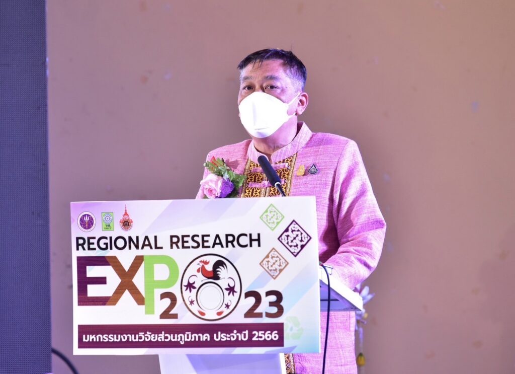 ศาสตราจารย์ (พิเศษ) ดร.เอนก เหล่าธรรมทัศน์ รมว.อว. กล่าวว่า กระทรวง (อว.) โดย (วช.) ได้จัดงาน “มหกรรมงานวิจัยส่วนภูมิภาค ประจำปี 2566” โดยนำองค์ความรู้จากผลงานวิจัย เทคโนโลยี และนวัตกรรมไปสู่การใช้ประโยชน์ระดับพื้นที่ในวงกว้างและเป็นรูปธรรม สร้างแรงบันดาลใจและแรงกระตุ้นให้กับบุคลากรจากสถาบันการศึกษา หน่วยงานวิจัย ทั้งภาครัฐและเอกชน นักเรียน นักศึกษา เยาวชน และประชาชน ได้นำองค์ความรู้จากผลงานวิจัยและนวัตกรรมไปพัฒนาและสร้างสรรค์ พร้อมต่อยอด ผลงานวิจัย สิ่งประดิษฐ์ เทคโนโลยี และนวัตกรรมที่มีคุณภาพ สอดคล้องกับความต้องการของประเทศ รวมทั้งส่งเสริม สนับสนุนการเผยแพร่ผลงานวิจัยและนวัตกรรมไปสู่การใช้ประโยชน์ในภูมิภาค ในปัจจุบันประเทศไทยมีมูลค่าทางเศรษฐกิจอันดับที่ 24 ของโลก นี่คือสิ่งที่แสดงให้เห็นถึงศักยภาพของไทยที่พร้อมจะเป็นประเทศพัฒนาแล้วในปี พ.ศ.2580 โดยประเทศไทยของเรามีงานวิจัยและนวัตกรรมที่มีส่วนสำคัญที่ช่วยให้เศรษฐกิจขับเคลื่อนไปข้างหน้า โดยเฉพาะในภาคอุตสาหกรรมและภาคการเกษตรที่ช่วยลดการพึ่งพาการนำเข้าเทคโนโลยีและนวัตกรรมจากต่างประเทศ นับว่าเป็นสิ่งที่ดีอย่างยิ่งที่ (วช.) จัดงานนี้ขึ้นมาเป็นหนึ่งในกลไกขับเคลื่อนงานวิจัยและนวัตกรรมในการพัฒนาท้องถิ่น และเมื่อท้องถิ่นเข้มแข็งก็จะต่อยอดให้เกิดประโยชน์ในการพัฒนาประเทศอย่างยั่งยืนต่อไปในอนาคต