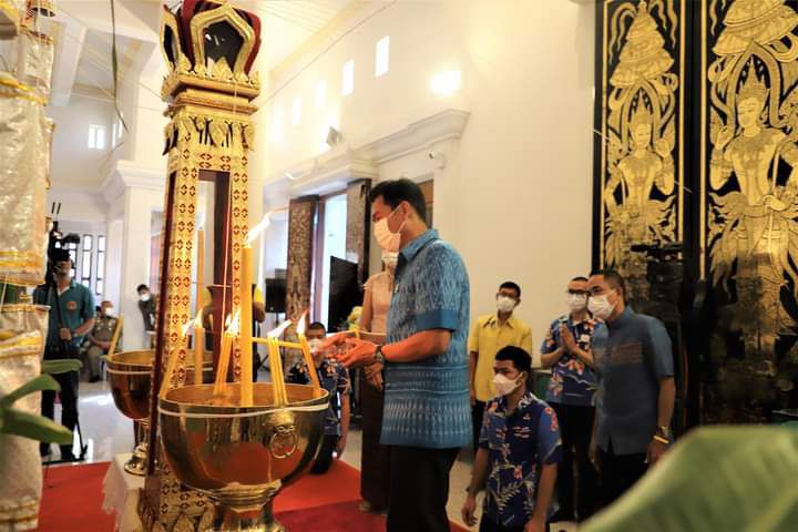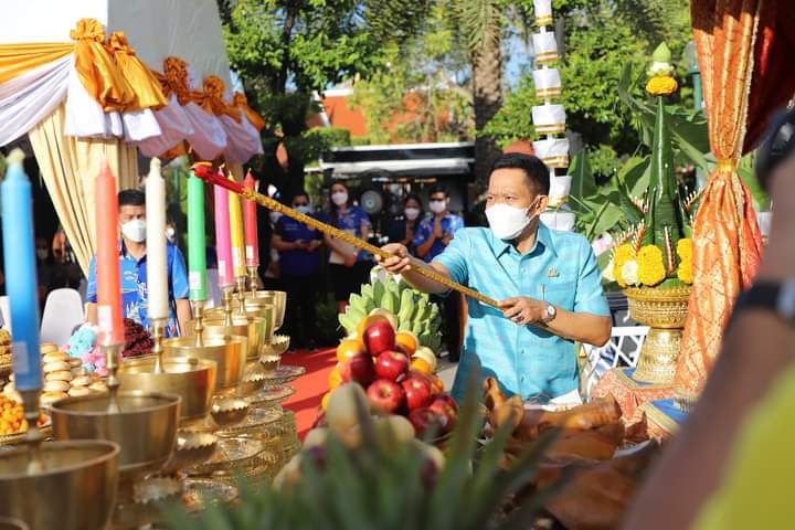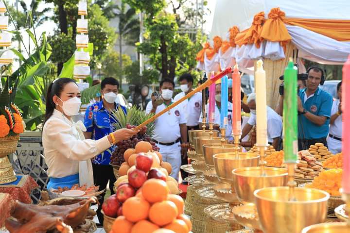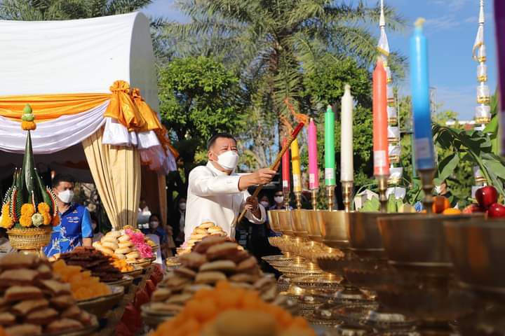 เช้าวันนี้ (6 มกราคม 2566) เวลา 08.09 น. ณ พระมหาธาตุเจดีย์มงคลสิทธาจารย์(หลวงพ่อรวย) วัดตะโก อำเภอภาชี จังหวัดพระนครศรีอยุธยา นายนิวัฒน์ รุ่งสาคร ผู้ว่าราชการจังหวัดพระนครศรีอยุธยา เป็นประธานฝ่ายฆราวาส จุดธูปเทียนบูชาพระรัตนตรัย เครื่องทองน้อย สักการะพระมงคลสิทธาจารย์ เชิญเทียนชนวน ถวายแด่ พระธรรมรัตนมงคล เจ้าคณะจังหวัดพระนครศรีอยุธยา เจ้าอาวาสวัดพนัญเชิงวรวิหาร องค์ประธานฝ่ายสงฆ์ เจิมเทียนชัย พร้อมพระเถราจารย์เจริญคาถาจุดเทียนชัย จุดเทียนพุทธาภิเษกที่ขันสาคร นั่งปรกอธิษฐานจิตในพิธีพุทธาภิเษก “เข็มที่ระลึก” ตราจังหวัดพระนครศรีอยุธยา เพื่อมอบในงาน “ยอยศยิ่งฟ้า อยุธยามรดกโลก ประจำปี 2565” ทั้งนี้ ก่อนพิธีพุทธาภิเษก ประธานฯ ได้ประกอบพิธีบวงสรวงบูชาฤกษ์ บริเวณด้านหน้าพระมหาธาตุฯ โดยมีพระครูปลัดจริยวัฒน์ (พระอาจารย์แก้ว) รองเจ้าคณะอำเภอภาชี เจ้าอาวาสวัดตะโก เป็นประธานฝ่ายสงฆ์