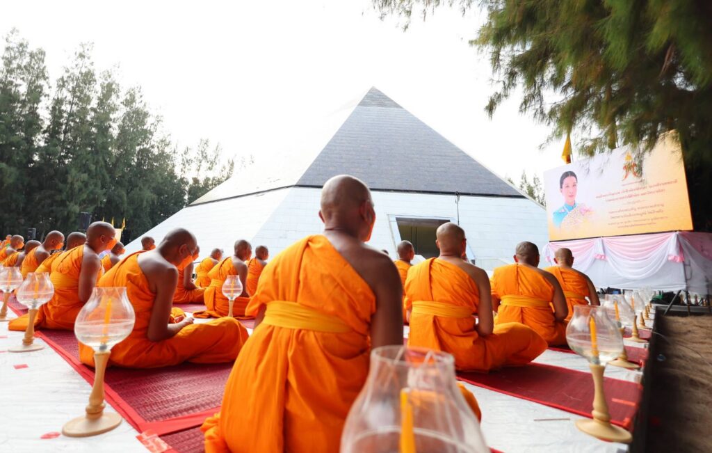 โดยคณะสงฆ์ธรรมยาตรา พร้อมด้วยพุทธศาสนิกชนร่วมกันสวดมนต์บทธัมมจักกัปปวัตตนสูตร นั่งสมาธิเจริญภาวนา จากนั้นผู้แทนคณะสงฆ์กล่าวถวายพระพรแด่สมเด็จพระเจ้าลูกเธอ เจ้าฟ้าพัชรกิติยาภา นเรนทิราเทพยวดี กรมหลวงราชสาริณีสิริพัชร มหาวัชรราชธิดา ให้พระองค์ทรงหายจากพระอาการประชวรโดยเร็ววัน เมื่อพระเดชพระคุณพระธรรมพุทธิมงคล ที่ปรึกษาเจ้าคณะภาค 14 เจ้าอาวาสวัดป่าเลไลยก์วรวิหาร ประธานสงฆ์ถึงศูนย์กลางพิธี ได้น้อมนำพวงมาลัยถวายบูชาพระบรมสารีริกธาตุ ต่อด้วยถวายบูชารูปหล่อพระมงคลเทพมุนี (สด จนฺทสโร) โดยมีนายปริญญา เขมะชิตรองผู้ว่าราชการจังหวัดสุพรรณบุรี เป็นประธานฝ่ายฆราวาส กล่าวเปิดงาน