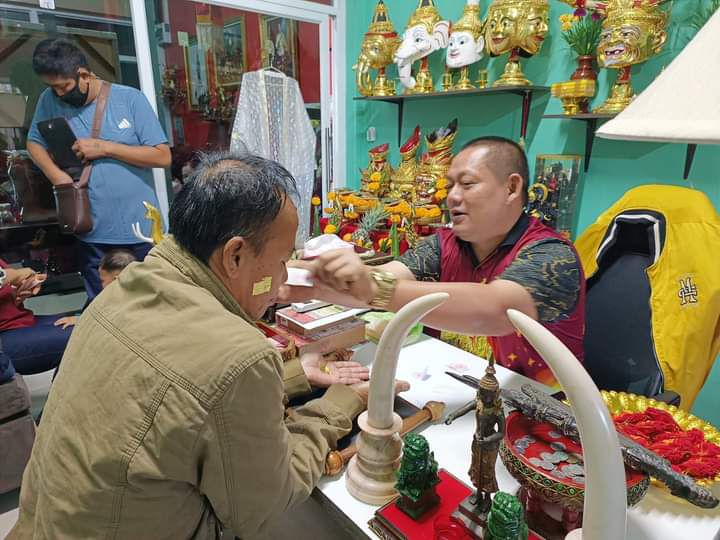 ให้ให้ท่านเขียนยันต์หัวใจมหาเศรษฐีลงบนฝ่ามือ เพื่อเป็นสิริมงคล กับตัวเองและครอบครัว ทุกคนที่มาลงนะปิดทองฝ่ามือ จะได้รับมอบ วัตถุมงคลของอาจารย์ พราหมณ์ อนันตมงคล