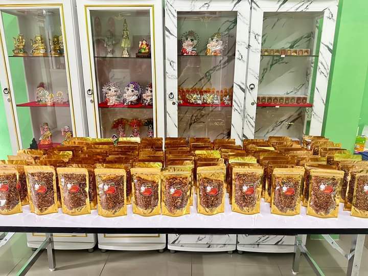 สองผู้อำนวยการฯ ไม่รอช้าลงไปชิมน้ำพริกรสเด็ด เจ้าของแบรนด์ อาจารย์ก้อง อนันตมงคล ได้หันมาผลิตน้ำพริกกากหมู มาวางขายที่ตำหนักอาจารย์ก้อง อนันตมงคล เอาไว้ให้กับลูกศิษย์ลูกหาที่สนใจซื้อนะไปทางหรือนำไปฝากญาติมิตรสหายหรือนำไปขายอาจารย์ยินดีขายให้ขายให้เป็นราคาส่ง