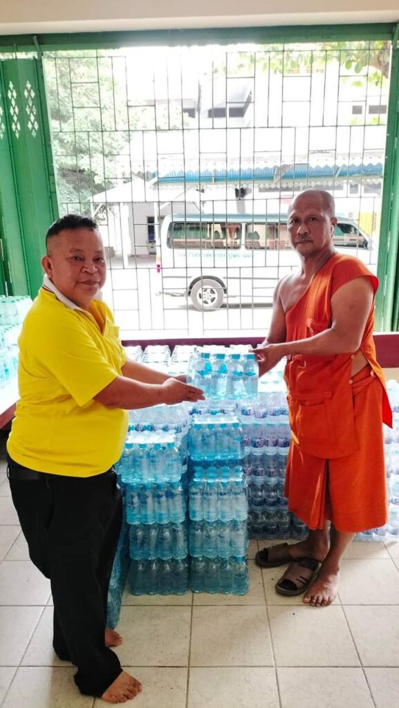 เดินทางพร้อมด้วยครอบครัวอัมพร เดินทางมามอบน้ำดื่ม