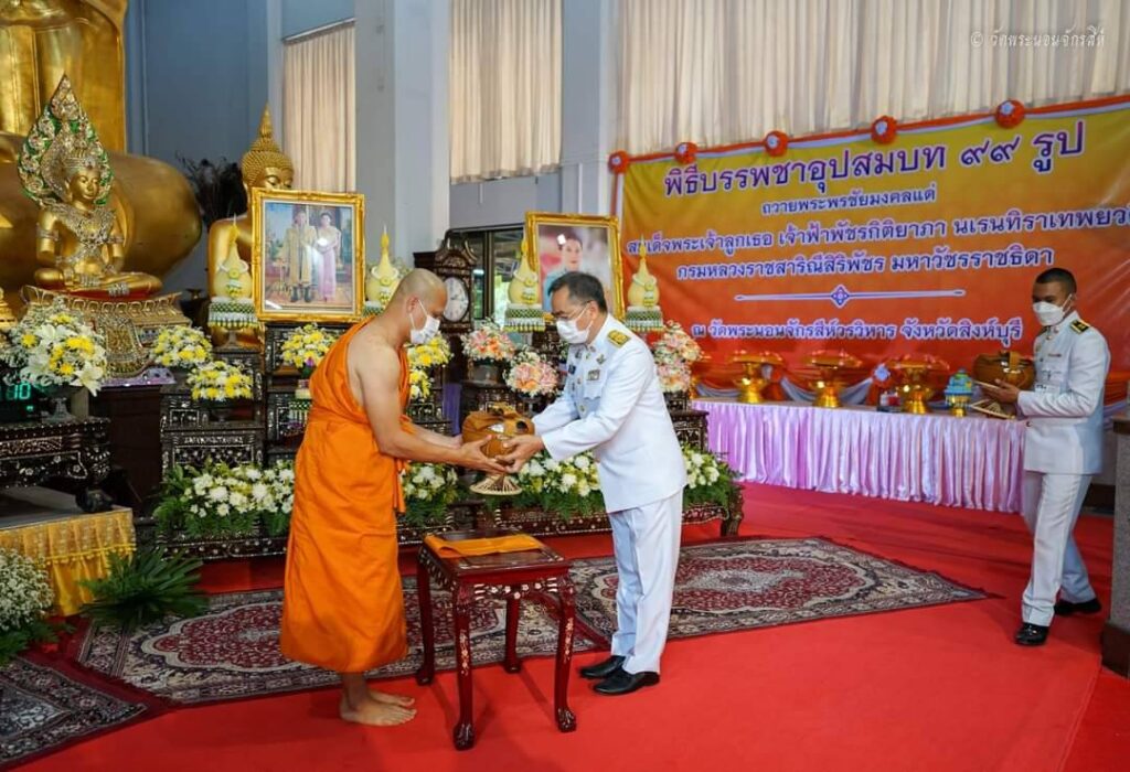 สำหรับจังหวัดสิงห์บุรีมีผู้เข้าร่วมโครงการจำนวน 99 นาค ก่อนที่ในวันนี้(9มกราคม2566)เวลา 12.30 น.จะมีการประกอบพิธีบรรพชาอุปสมบท ซึ่งพระภิกษุสามเณรจะอยู่จำวัดเป็นระยะเวลา 15 วัน และขอเชิญชวนพุทธศาสนิกชนในพื้นที่ร่วมกันทำบุญตักบาตร ถวายภัตตาหารเช้า ถวายภัตตาหารเพล ถวายน้ำปานะ ตามกำลังศรัทธา เพื่อเกิดอานิสงส์จากการรวมความศรัทธาและความจงรักภักดีถวายพระพรแด่ สมเด็จพระเจ้าลูกเธอ เจ้าฟ้าพัชรกิติยาภา นเรนทิราเทพยวดี กรมหลวงราชสาริณีสิริพัชร มหาวัชรราชธิดา ให้ทรงหายจากพระอาการประชวรและทรงมีพระพลานามัยแข็งแรงโดยเร็ววัน