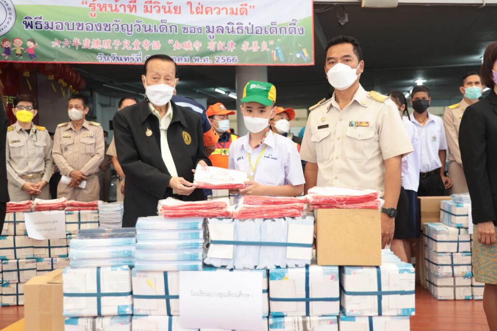 วันนี้ (วันจันทร์ที่ 9 มกราคม 2566 เวลา 09.30 น.) นายวิเชียร เตชะไพบูลย์ ประธานกรรมการมูลนิธิป่อเต็กตึ๊ง นายสัก กอแสงเรือง รองประธานกรรมการ นายวิชิต ชินวงศ์วรกุล รองประธานกรรมการ พร้อมด้วยคณะกรรมการ และผู้บริหารมูลนิธิฯ จัดพิธีมอบชุดของขวัญวันเด็ก ประกอบด้วย สมุด ดินสอ ดินสอสี ไม้บรรทัด และกระเป๋าดินสอ เป็นของขวัญให้กับนักเรียนในเขตกรุงเทพฯ และปริมณฑล โดยมีผู้แทนโรงเรียนเป็นผู้รับมอบ ณ ลานสำนักงานมูลนิธิป่อเต็กตึ๊ง พลับพลาไชย กรุงเทพฯ รวมทั้งจัดให้มีการส่งชุดของขวัญวันเด็กของมูลนิธิฯ เพื่อมอบให้กับเยาวชนในส่วนภูมิภาค ผ่านหน่วยงานต่างๆ ทุกจังหวัดทั่วประเทศ ตลอดจนหน่วยงานต่างๆ ทั้งในส่วนกลางและส่วนภูมิภาค รวมจำนวนของขวัญวันเด็กที่มูลนิธิป่อเต็กตึ๊ง ได้นำมอบให้กับเยาวชน เนื่องในวันเด็กแห่งชาติ ประจำปี 2566 คิดเป็นมูลค่ากว่า 12 ล้านบาท