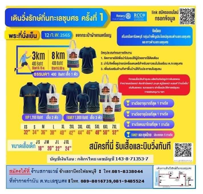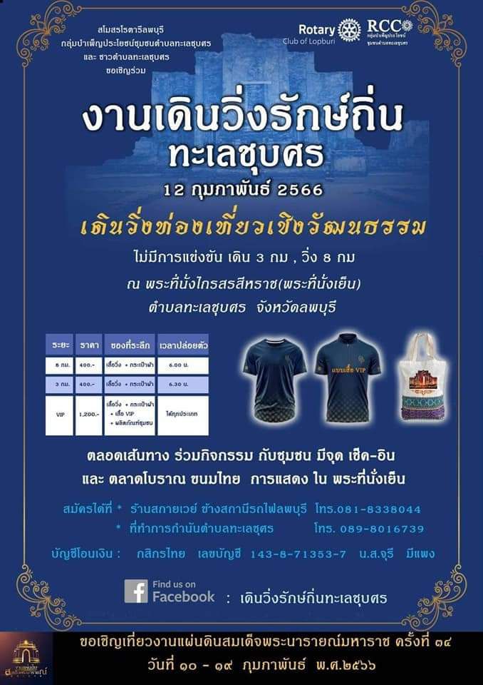 พบกันนะครับ งานเดินวิ่งรักษ์ถิ่นทะเลชุบศร ครั้งที่ 1ประจำปี 2566 วันอาทิตย์ที่ 12 กุมภาพันธ์ 2566(เวลา: 05.0