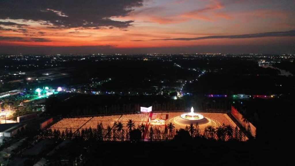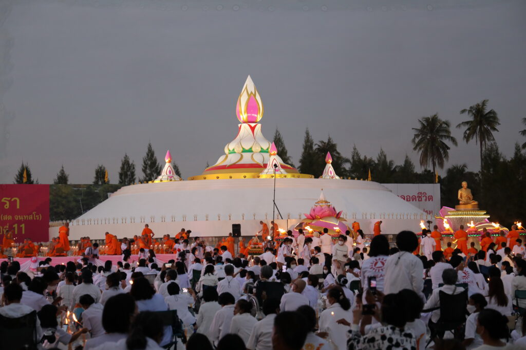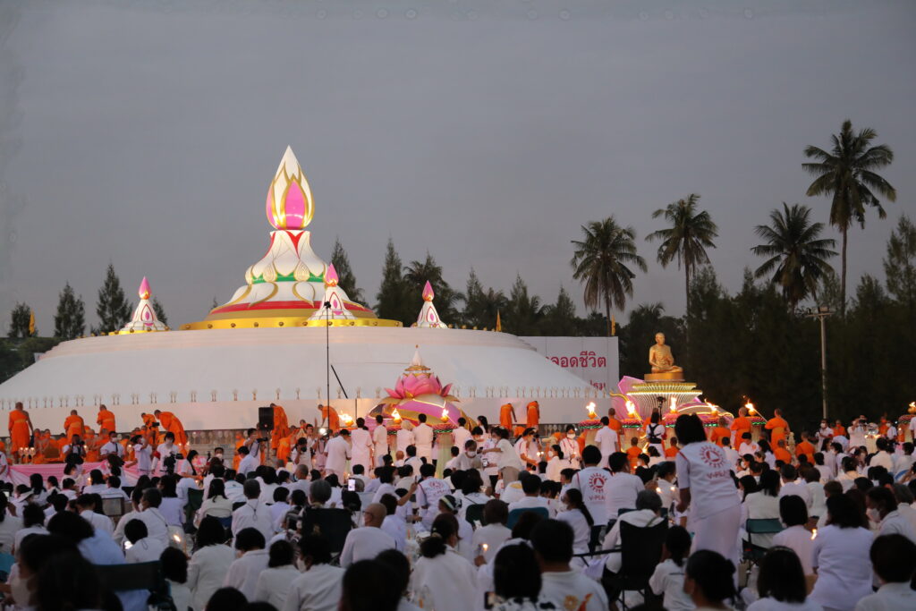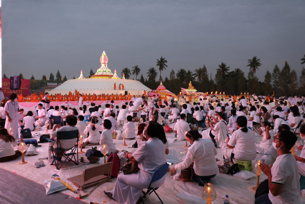 พระเดชพระคุณพระราชเมธี รองเจ้าคณะภาค 8 ผู้ช่วยเจ้าอาวาสวัดไตรมิตรวิทยารามวรวิหาร นำคณะสงฆ์ธรรมยาตรา พร้อมด้วยพุทธศาสนิกชนร่วมกันสวดมนต์บทธัมมจักกัปปวัตตนสูตร นั่งสมาธิเจริญภาวนา จากนั้นผู้แทนคณะสงฆ์กล่าวถวายพระพรแด่สมเด็จพระเจ้าลูกเธอ เจ้าฟ้าพัชรกิติยาภา นเรนทิราเทพยวดี กรมหลวงราชสาริณีสิริพัชร มหาวัชรราชธิดา ให้พระองค์ทรงหายจากพระอาการประชวรโดยเร็ววัน เมื่อพระเดชพระคุณพระราชเมธี รองเจ้าคณะภาค 8 ผู้ช่วยเจ้าอาวาสวัดไตรมิตรวิทยารามวรวิหาร ประธานสงฆ์ถึงศูนย์กลางพิธี ได้น้อมนำพวงมาลัยถวายบูชาพระบรมสารีริกธาตุ ต่อด้วยถวายบูชารูปหล่อพระมงคลเทพมุนี (สด จนฺทสโร) โดยมีว่าที่ร้อยโทอรรถชล ทรัพย์ทวี นายอำเภอสามพราน เป็นประธานฝ่ายฆราวาส กล่าวเปิดงาน
