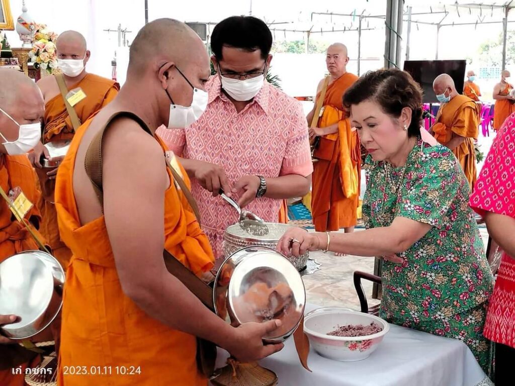 นางภรณี ธนาคมานุสรณ์ คุณแม่นายชัยวุฒิ ธนาคมานุสรณ์รัฐมนตรีว่าการกระทรวงดิจิทัลเพื่อเศรษฐกิจและสังคม ข้าราชการ บุคลากรในสังกัด และพุทธศาสนิกชน ร่วมทำบุญตักบาตร อย่างพร้อมเพรียง เพื่อถวายเป็นพระราชกุศลแด่สมเด็จพระเจ้าลูกเธอ เจ้าฟ้าพัชรกิติยาภานเรนทิราเทพยวดี กรมหลวงราชสาริณีสิริพัชร มหาวัชรราชธิดา