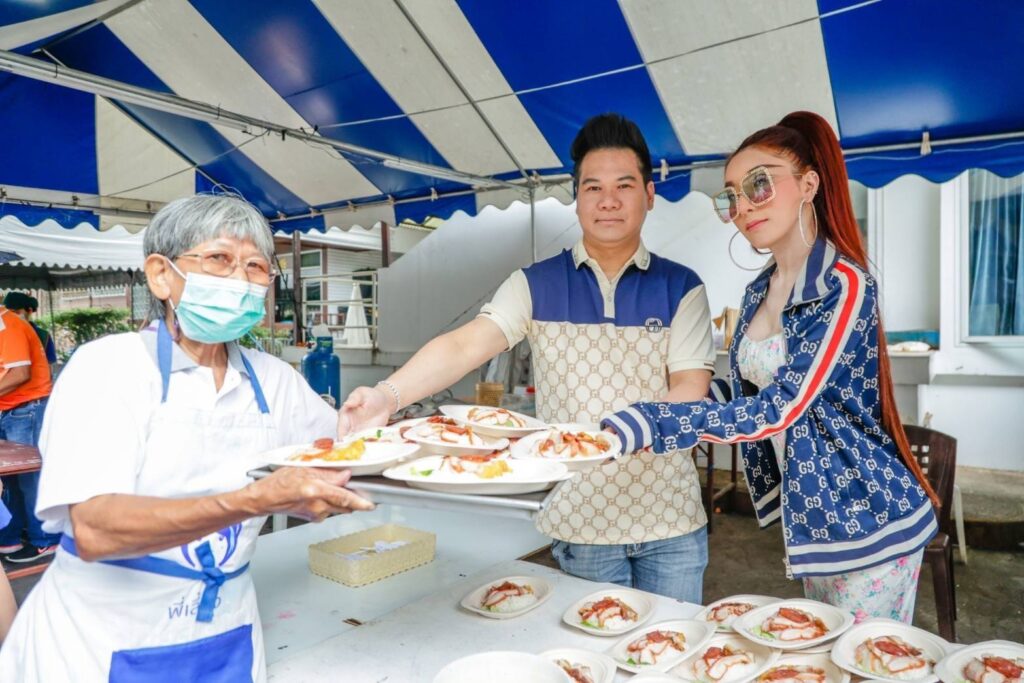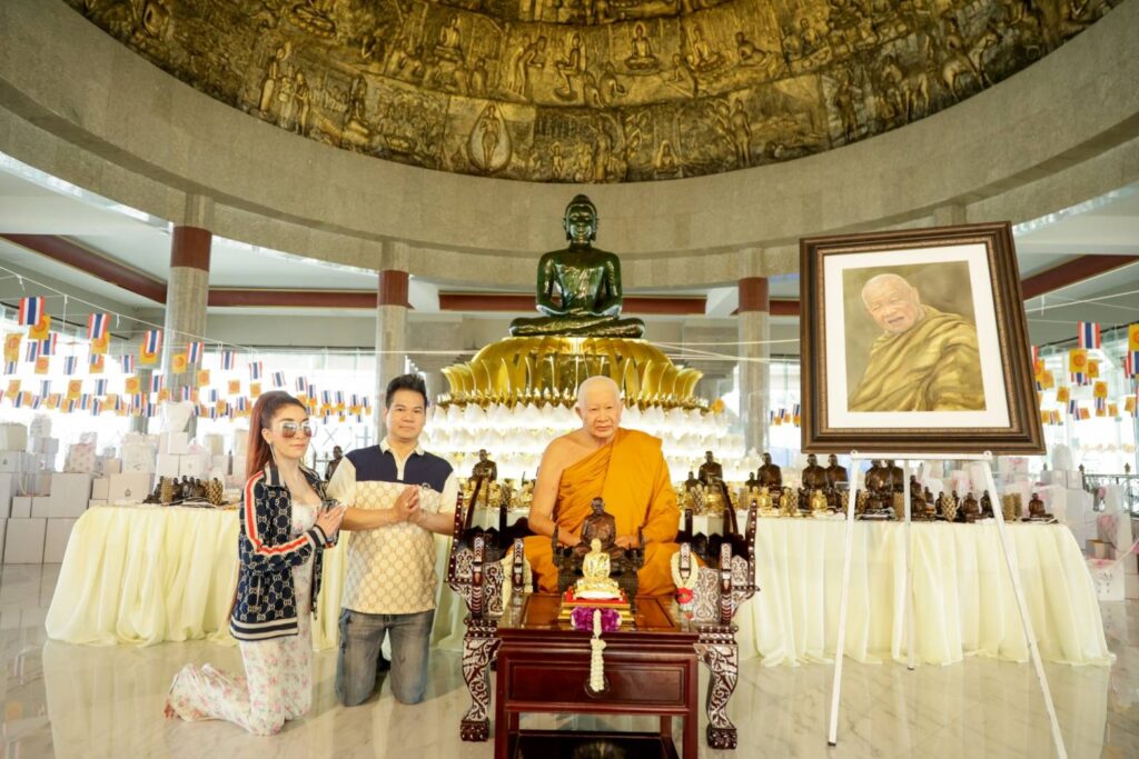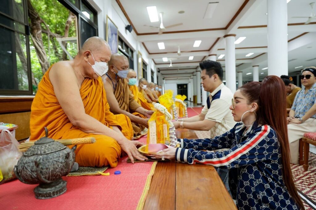 นอกจากทำบุญถวายพระเพลแล้ว ทุกคนก็เปี่ยมสุข อิ่มบุญ ไปด้วยกับการร่วมแจกอาหาร ให้กับทีมงานของวัด ญาติธรรม และผู้มาทำบุญในวัด ได้รับประทานอาหารอิ่มท้องร่วมกัน โดยคุณฮันนี่ และคณะยังได้เข้ากราบสักการะรูปปั้นเหมือน สมเด็จพระญาณวชิโรดม (หลวงพ่อวิริยังค์), หลวงพ่อหยก และ เจ้าแม่กวนอิมหยกเขียว เพื่อเป็นสิริมงคลชีวิตอีกด้วย