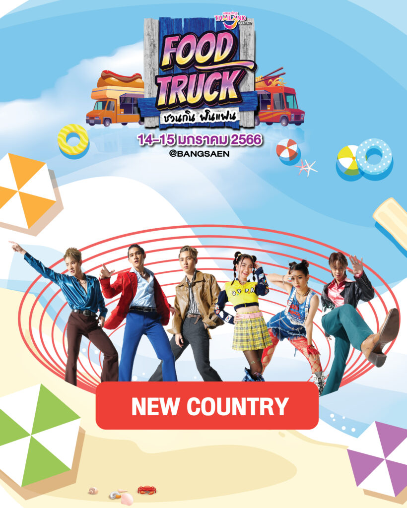 ททท. ชวนทุกท่านเพลิดเพลินไปกับอาหารหลากหลาย FOOD TRUCK จุกๆ กว่า 50 คัน.. พร้อมรับชมโชว์ดนตรีสดจากศิลปินชื่อดัง นำทีมโดย นิว คันทรี่ (New Country) วงบอยแบนด์คลื่นลูกใหม่แนวลูกทุ่ง ค่าย Grammy Gold เจ้าของเพลงฮิตสุดฮอตบนโลกโซเชียลอย่าง “Stand by หล่อ” เพลงแนวลูกทุ่งลูกกรุงที่มีการผสมผสานให้เข้ากับยุคสมัยอย่างลงตัว พร้อมด้วยทัพศิลปินไอดอลอีกมากมาย ไม่ว่าจะเป็นสองหนุ่มสุดคิวบ์ NetJames (เน็ต-เจมส์) วงเกิร์ลกรุ๊ป BERRY BERRY, BLACK BERRY, ROSE BERRY, MIX BEERRY, KONGKUMLANGPLENG