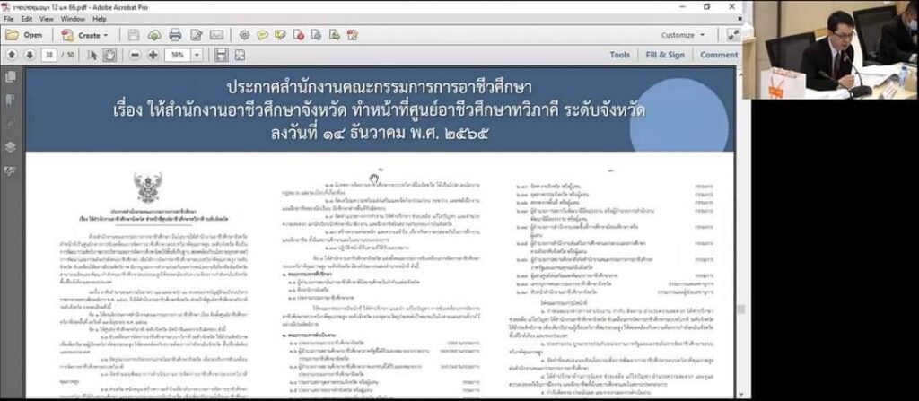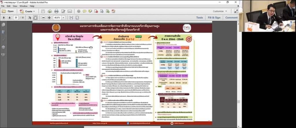 ดร.สุรพงษ์ เอิมอุทัย ผู้อำนวยการศูนย์อาชีวศึกษาทวิภาคี เข้าร่วมประชุมร่วมกับคณะอนุกรรมการการอาชีวศึกษาด้านความร่วมมือ ในการผลิตและพัฒนากำลังคนอาชีวศึกษา มีท่านปัทมาวลัย รัตนพล เป็นประธานคณะอนุกรรมการ และเป็นประธานการประชุมดังกล่าว เพื่อร่วมขับเคลื่อนนโยบาย Quick win ด้านการยกระดับการจัดการอาชีวศึกษาระบบทวิภาคี ของท่านเลขาธิการฯ ว่าที่ร้อยตรีธนุ วงษ์จินดา ให้บรรลุตามเป้าหมายอย่างเป็นรูปธรรม