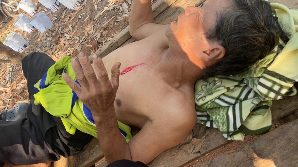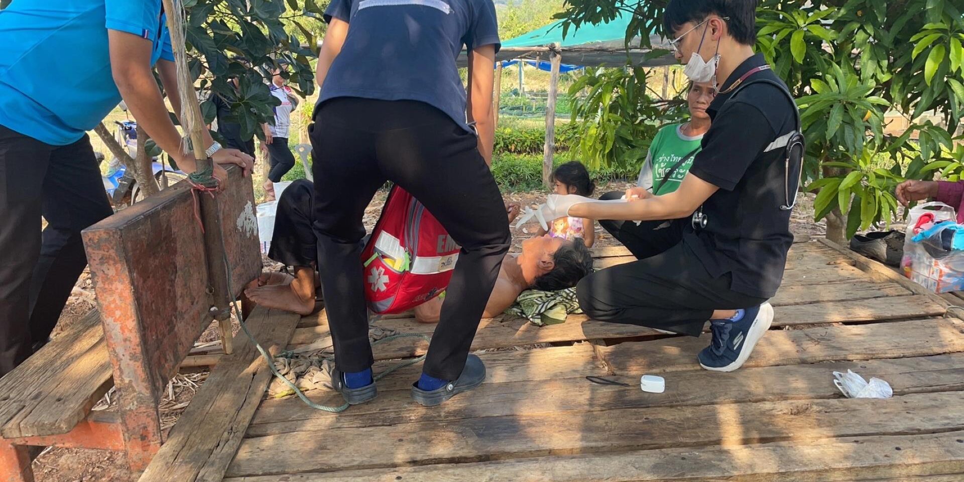 จากการสอบถาม นางไพรินทร์ แก้วคำ อายุ 49 ปี ญาติคนเจ็บ เล่าว่า ที่มาเก็บมะขามหวาน รับจ้างด้วยกัน เล่าว่า ขณะนั้นคนเจ็บได้นำบันเอาไปพาดไว้ที่กิ่งมะขาม เพื่อจัดเตรียมขึ้นเก็บ แล้ว ได้นำตะขอเหล็ก ที่เอาไว้เกี่ยวฝักมะขาม คนเจ็บได้ขึ้นบันไดไปถึงขั้นที่ 7 เกิดบันไดพลิกเสียการทรงตัว ทำให้ตะขอเหล็ก ที่เกี่ยวไว้ขั้นบันไดที่สูงเกิดตกลงมาโดนหน้าอกตรงลิ้นปี่ จนเป็นแผลกว้างยาว ตอนนี้แกอยู่โรงพยาบาล ตกลงมาแกก็ลงมานอนอยู่กับพื้น เลือดก็ไหล แกเลยนอนหงายท้อง ตอนแรกเลือดมันก็ไหลลงมาช่วงพุงพอจับแกนอนเลือดมันก็เลยไหลเข้าตรงรูโพรงข้างในเป็นรูกว้างมาก มองเห็นเลือดแล้วเห็นหัวใจเต้นเต้นข้างในรูกว้างมาก อยากจะให้คนที่ขึ้นเก็บมะขามให้ระมัดระวังด้วย