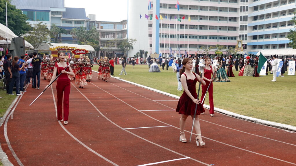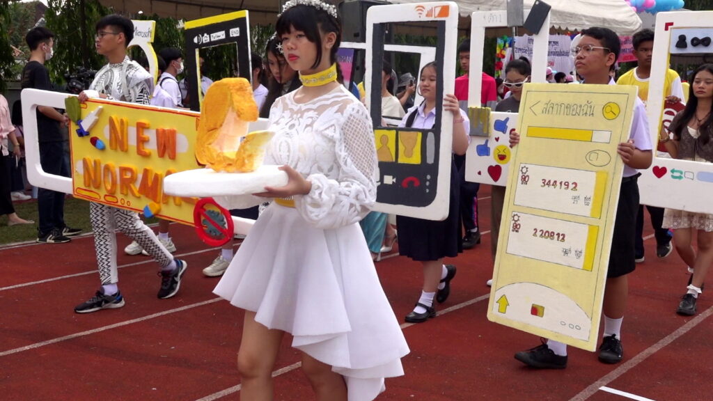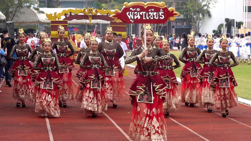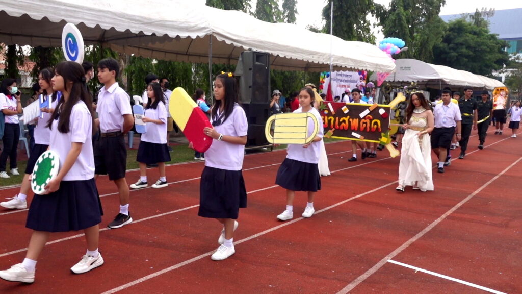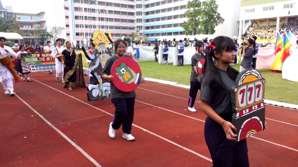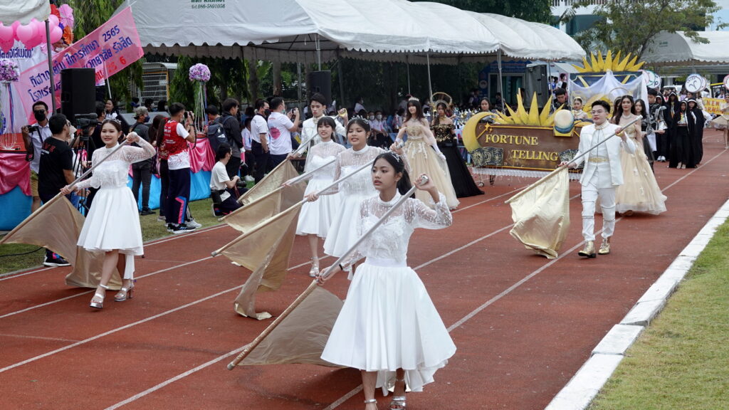 ภายในงานมีเดินขบวนพาเหรดของนักเรียนแต่ละสี ประกอบด้วย 5 สี หลัก ได้แก่ สวนเพชรสีขาว , สวนมรกตสีเขียว , สวนบุษราคัมสีเหลือง , สวนไพลินสีน้ำเงิน และสวนทับทิมสีแดง มีการรณรงค์เรื่อง ต่อต้านปัญหายาเสพติด รรู้เท่าทันโซเชียลมีเดียเพื่อไม่ให้ถูกหลอกลวง และการพนันออนไลน์ และมีการประกวดกองเชียร์และเชียร์ลีดเดอร์ สร้างความสนุกสนานแก่นักเรียนและผู้เข้าร่วมงานกีฬาสี