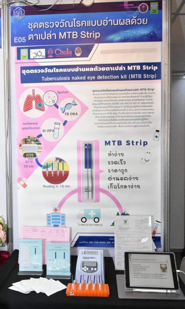 วัณโรคได้ จึงเป็นที่มาของสิ่งประดิษฐ์ที่ชื่อว่า “ชุดตรวจวัณโรคแบบอ่านผลด้วยตาเปล่า MTB Strip” ซึ่งสามารถวินิจฉัยวัณโรคได้จากสิ่งส่งตรวจเสมหะของผู้ป่วยโดยตรง มีประสิทธิภาพดีเทียบเท่ากับเทคนิคทางอณูชีววิทยา