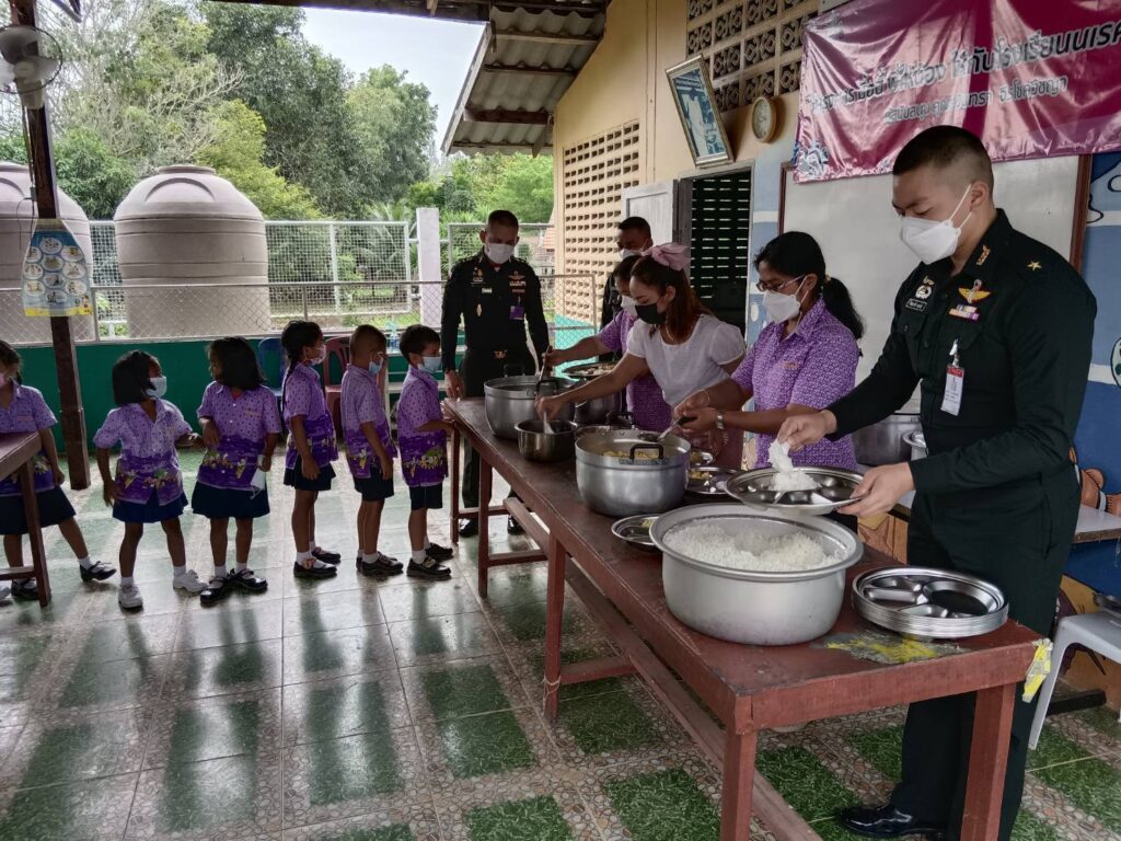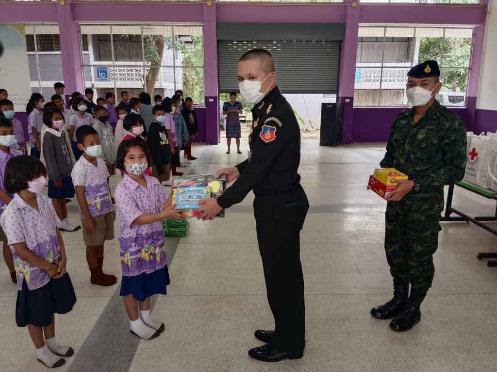 เมื่อวันที่ 10 ม.ค.66 เวลา 10.00 น.ณ โรงเรียนนเรศวรห้วยผึ้ง ต.ห้วยสัตว์ใหญ่ อ.หัวหิน จ.ประจวบคีรีขันธ์ โดยพล.ต.ประยุกต์ อุ่นอบ ผบ.มทบ.15 มอบหมายให้ พ.อ.ชัชวาลย์ วราพันธุ์ ผบ.พัน.มทบ.15,รอง.ผบ.พัน.มทบ.15 และคณะนายทหารของหน่วย ร่วมมอบสิ่งของเครื่องอุปโภค – บริโภค เสื้อผ้า ผ้าห่ม พร้อมสิ่งของพระราชทานให้กับคณะครูอาจารย์ นักเรียน และจัดเลี้ยงอาหารกลางวันให้แก่เด็กนักเรียนโรงเรียนนเรศวรห้วยผึ้ง เนื่องในวันเด็กแห่งชาติ ปี 2566