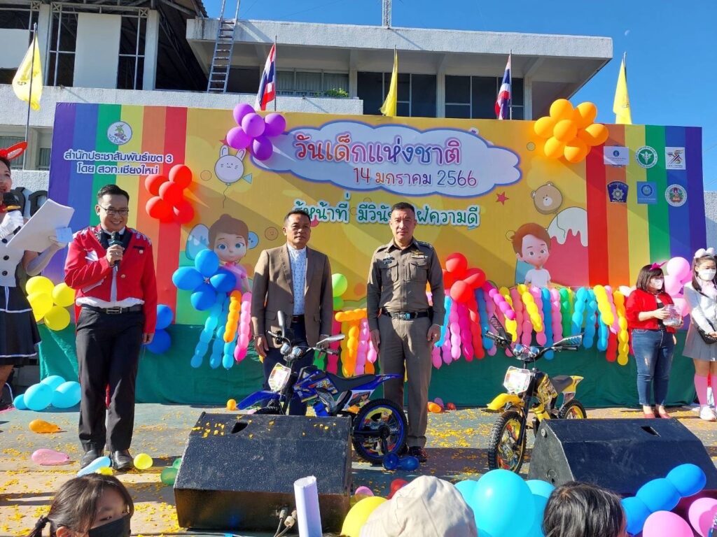 พล.ต.ท.ปิยะ ต๊ะวิชัย ผบช.ภ.5 ร่วมพิธีเปิดงานวันเด็กแห่งชาติ สำนักงานประชาสัมพันธ์เขต3 (NBT) ประจำปี 2566 และมอบรถจักรยาน จำนวน 2 คัน เพื่อเป็นรางวัลในงานวันเด็ก โดยมีนายแสงทอง อนันตภักดิ์ ผอ.สำนักงานประชาสัมพันธ์เขต3 เป็นประธานในพิธีเปิด ณ สำนักประชาสัมพันธ์เขต3 อ.เมือง จว.เชียงใหม่