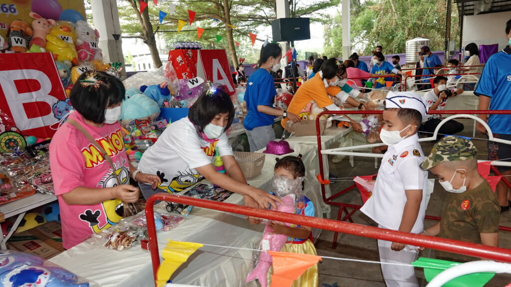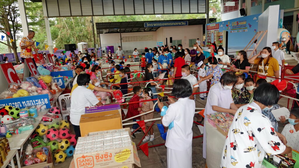 นอกจากนี้ ภายในงานฯ วัดพระธรรมกาย มูลนิธิธรรมกาย และเครือข่ายคณะศิษยานุศิษย์วัดพระธรรมกายทั่วโลก ยังมีการมอบของขวัญเป็นรางวัลแห่งความดี และออกร้านบริการอาหาร-เครื่องดื่มจากผู้ใหญ่ใจดี เป็นสาธารณสงเคราะห์ ซึ่งนอกจากการประสานความร่วมมือร่วมจัดงานวันเด็กแห่งชาติร่วมกับองค์กรภาคีเครือข่ายบวรในพื้นที่แล้ว เมื่อวันที่ 10 มกราคม พ.ศ.2566 ยังได้มีการมอบของขวัญสนับสนุนการจัดกิจกรรมวันเด็กแห่งชาติ ประจำปี พ.ศ.2566 ให้กับองค์กรภาคีเครือข่ายบวร 200 องค์กร เป็นสาธารณสงเคราะห์ เพื่อน้อมถวายเป็นพระกุศล แด่สมเด็จพระเจ้าลูกเธอ เจ้าฟ้าพัชรกิติยาภา นเรนทิราเทพยวดี กรมหลวงราชสาริณีสิริพัชร มหาวัชรราชธิดา อีกด้วย.