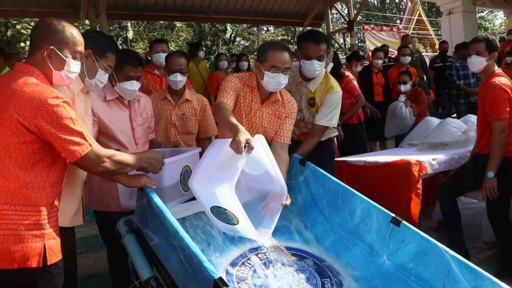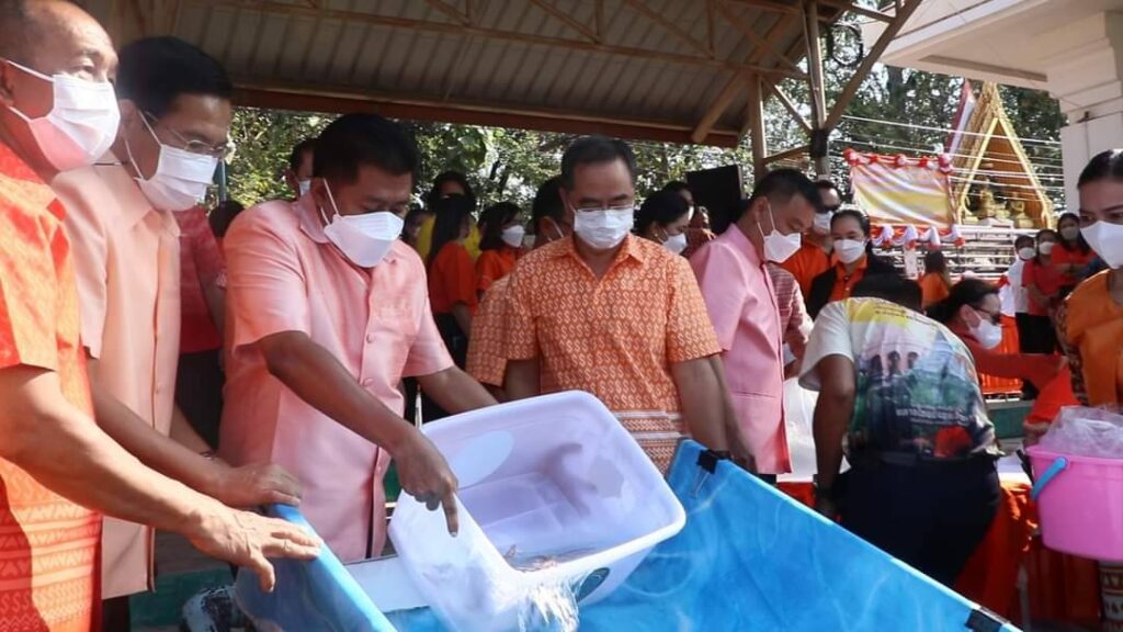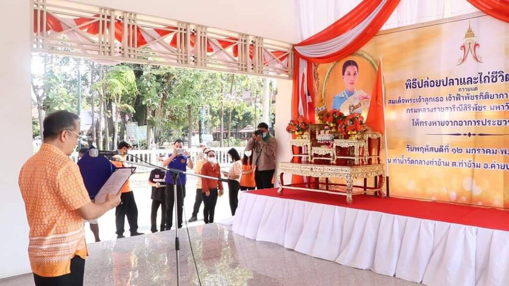 โดยมี รองผู้ว่าราชการจังหวัดสิงห์บุรี หัวหน้าส่วนราชการ ตำรวจ ทหาร ศาล เจ้าหน้าที่ พนักงาน ประชาชน เข้าร่วมกิจกรรม ปล่อยปลาขนาดใหญ่ 9 ชนิด จำนวน 45 ตัว ปลาขนาดเล็ก จำนวน 11,999 ตัว ลงสู่แม่น้ำน้อยและไถ่ชีวิตกระบือ จำนวน 25 ตัว เพื่อมอบให้กับเกษตรกรในพื้นที่จังหวัดสิงห์บุรี ถวายเป็นพระราชกุศลให้ทรงหายจากพระอาการประชวร มีพระพลานามัยแข็งแรงสมบูรณณ์ โดยเร็ววัน