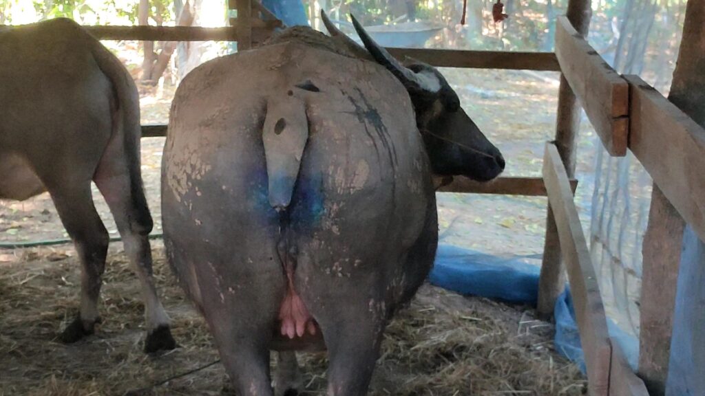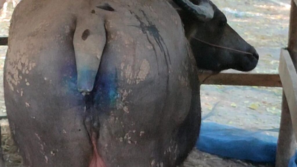 ต่อมาผู้สื่อข่าวได้เดินทางไปที่คอกควายของนายอรรถณพ จันทศร อายุ38ปี เจ้าของควายดังกล่าว ที่บ้านเลขที่ 141/1 ต.ท้ายดง อ.วังโป่ง จ.เพชรบูรณ์ พบกับ นางสายพิน ศรีทองอ่อน อายุ 46 ปี เปิดเผยว่า ตนเองเป็นคนคอยดูแลควายให้เจ้าของบ้าน โดยเลี้ยงไว้ทั้งหมด 4 ตัว ซึ่งตัวที่ถูกตัดหาง ชื่อว่าเจ้าพูนทรัพย์ อายุราว 6 ปีเศษ เป็นควายเพศเมียท้องแก่ใกล้คลอด สภาพถูกโจรใจบาปใช้ของมีคมตัดหางจนขาดออกจากกัน เหลือไว้เพียงโคนหางเล็กน้อย หลังเกิดเหตุ เจ้าของควายได้ประสานไปยังปศุสัตว์อำเภอวังโป่งให้เข้ามาดูแล และได้ล้างแผลใส่ยา พร้อมฉีดยาให้เรียบร้อย โดยระบุร่องรอยการถูกตัดในครั้งนี้ คาดต้องเป็นคนมีฝีมือในการตัดหางควาย ถึงตัดเป็นลักษณะแบบนี้ได้ ซึ่งจนถึงขณะนี้ ทุกคนก็ยังสงสัย ในเจตนาคนร้าย ที่ลงมือก่อเหตุตัดหางควายไปใช้ทำอะไร หรือนำไปเพื่อวัตถุประสงค์ใดกันแน่