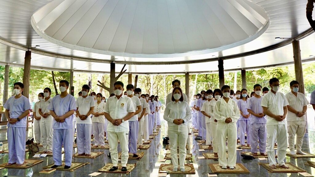 วันที่ 15 มกราคม 2566 ที่ลานบุญ ลานธรรม ลานปัญญา วัดโตนด ตำบลวัดชลอ อำเภอบางกรวย จังหวัดนนทบุรี : รศ.ดร.สุชาดา นันทะไชย รองศาสตราจารย์ ประจำวิชาการบริหารการศึกษา ภาควิชาการบริหารการศึกษา คณะศึกษาศาสตร์ มหาวิทยาลัยเกษตรศาสตร์ พร้อมคณาจารย์ นักศึกษาระดับปริญญาเอก 19 คน และนักศึกษาระดับปริญญาโท 59 คน เข้าร่วมโครงการ ฝึกอบรมเชิงปฏิบัติการ การพัฒนาจิตด้วยวิธีฝีกเจริญจิต