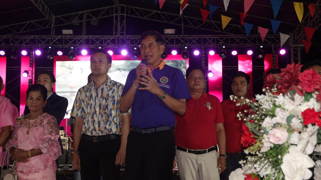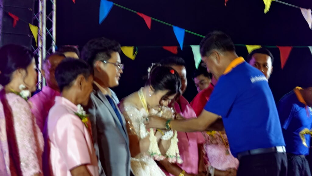 พล.ต.ท.คำรณวิทย์ ปกระจ่าง นายก อบจ.ปทุมธานี กล่าวว่า ก่อนที่จะแสดงความยินดีกับบ่าวสาว ขอให้ทุกท่านยืนตั้งจิตอธิฐานขอให้ สมเด็จพระเจ้าลูกเธอ เจ้าฟ้าพัชรกิติยาภาฯ ทรงหายจากอาการพระประชวรในเร็ววัน สิ่งศักดิ์สิทธิ์ที่ทุกท่านนับถือสูงสุด โปรดดลบันดาลให้พระองค์ภาฯ ขอทรงมีพระพลานามัยสมบูรณ์ แข็งแรง กลับมาเป็นมิ่งขวัญของประชาชนชาวไทยตลอดไป ในส่วนของงานมงคลสมรสเมื่อทุกท่านมาร่วมกันแสดงความยินดี พ่อแม่ของทั้งคู่ก็จะมีบุตรเพิ่มขึ้น ซึ่งในช่วงที่ผ่านมาบ้านปทุมเป็นจุดที่สำคัญในระยะทาง 5 กิโลเมตรเราได้ เหน็ดเหนื่อยเต็มที่จริงๆ ได้ท่านพีระศักดิ์ พงษ์พุฒิพัฒน์ นายกองค์การบริหารส่วนตำบลบ้านปทุม และที่เห็นทุกครั้งที่ลงพื้นที่ก็คือพ่อของเจ้าสาวที่ทุ่มเทช่วยเหลือไม่ยอมให้บ้านปทุมพังป้องกันพื้นที่เศรษฐกิจอื่น ๆ ได้อีกมากมาย วันนี้จึงมีแขกท่านผู้มีเกียรติหลากหลายท่านมาแสดงความยินดีกับคู่บ่าวสาวที่เป็นคู่ชีวิตเป็นทองแผ่นเดียวกัน วันนี้จึงเกิดเป็นสองครอบครัวมาอยู่เป็นครอบครัวเดียวกันตามที่โบราณเขาว่าไว้ ผมไปไหนมักจะพูดเสมอ “ถ้ารักหมากต้องรักทั้งทลาย อย่าไม่รักลูกใดลูกหนึ่ง” เป็นคำโบราณ หากไปรักลูกใดลูกหนึ่งแล้วอีกหลายลูกทั้งทลายจะรู้สึกอย่างไร ครอบครัวคนไทยไม่เหมือนครอบครัวทางตะวันตก ซึ่งคนไทยเรายังไปมาหาสู่เอื้ออาทรต่อกันตลอด เจ้าบ่าวรักเจ้าสาวอย่างไร ก็ขอให้รับครอบครัวของอีกฝ่ายทั้งเจ้าบ่าวเจ้าสาวเหมือน ๆ กัน จึงฝากทางเจ้าบ่าวเจ้าสาวไว้เท่านี้ ผมเองมาถึงจุดนี้ ผมเป็นคนที่มีน้ำใจเป็นนักกีฬา เพราะผมชอบเล่นกีฬา กีฬามีแพ้มีชนะ ถ้าดื้อดื้อเอาแพ้เอาชนะกันแล้ว จะมาใช้กับชีวิตครอบครัวไม่ได้ รู้จักอภัยให้กัน หนักนิดเบาหน่อยก็อภัยให้กัน.