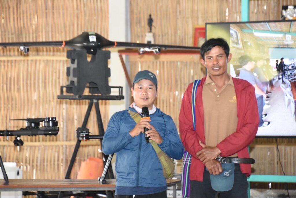 นายทรงวิทย์ แก้วมหานิล เจ้าหน้าที่ฝ่าย GIS มูลนิธิแม่ฟ้าหลวงในพระบรมราชูปถัมภ์ กล่าวถึงโดรนที่ใช้ว่าเป็นโดรนถ่ายภาพ เนื่องจากงานรับผิดชอบด้านงานแผนที่ภาพถ่ายทางอากาศ การจัดทำผังต้องใช้ภาพเทคโนโลยีมุมสูง การจัดการภาพถ่ายมุมสูงเพื่อวางแผนการจัดการพื้นที่เพื่อวางแผนการจัดการพื้นที่ ดังนี้ 1.การทำแผนที่ และ 2.การถ่ายภาพป่าพื้นที่ทำกิน รวมถึงเรื่องการจัดการพื้นที่ด้วย หลังจากที่ได้ใช้โดรนมีผลตอบรับ คือความสะดวก เมื่อก่อนทำงานเป็นทีมกับคนหมู่มาก การคุยกันในพื้นราบไม่เห็นภาพ แต่พอใช้โดรนบินขึ้นไปถ่ายภาพมาจะเห็นชัดเจน ทำให้เวลาวางแผนร่วมกันสามารถจัดวางคน จัดผังรายละเอียดได้ดีขึ้น