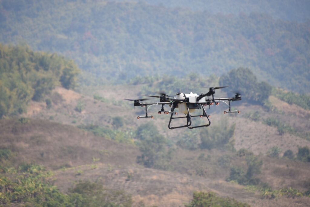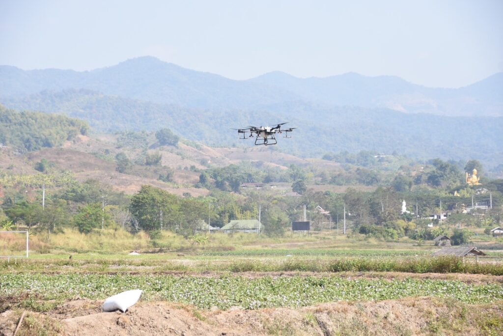 นายอาเปียว หมื่อเต๊ะ อยู่บ้านเลขที่ 747 หมู่ที่ 9 ตำบลท่าตอน อำเภอแม่อาย จังหวัดเชียงใหม่ เกษตรกรผู้ปลูกเสาวรส จำนวน 2 ไร่ กล่าวถึงประโยชน์ของการใช้โดรนในการพ่นยากำจัดศัตรูพืช โดยที่ไม่ต้องถือถังพ่นยาด้วยตัวเองไม่ต้องสัมผัสสารเคมี ใช้โดรนในการฉีดพ่นได้ดีกว่าในต้นไม้ที่สูงได้อย่างทั่วถึงและยาเข้าถึงพืชผลได้ดีและยังช่วยประหยัดเวลาและค่าใช้จ่าย จากเคยมีค่าใช้จ่าย 500 บาท หากใช้โดรน จ่ายเพียง 80 บาทเท่านั้น