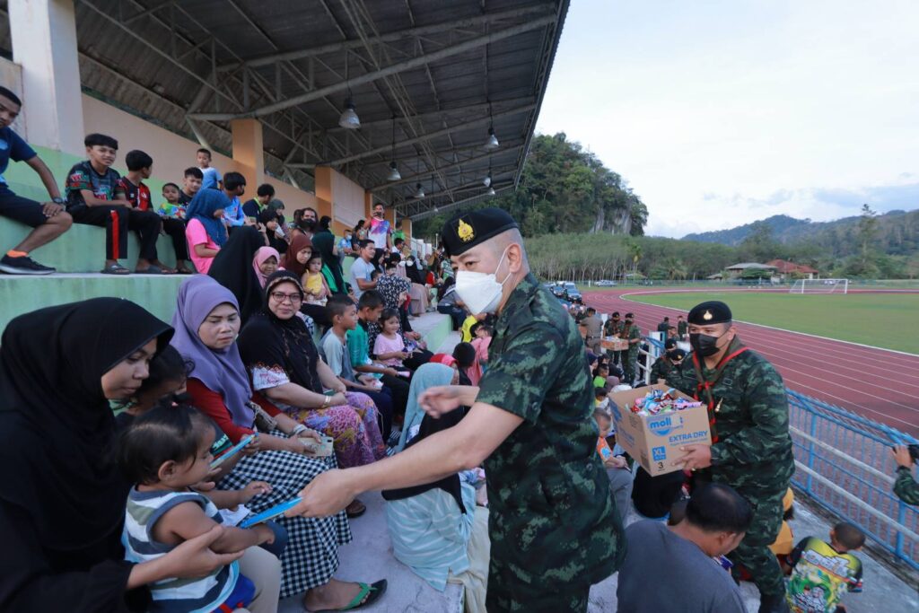 พล.ท.ศานติ ศกุนตนาค มทภ.4/ผบ.ศปก.ทภ.4 และคณะในโอกาสเดินทางมาตรวจเยี่ยมและพบปะให้โอวาทแก่ กกล.ป้องกันชายแดน ในพื้นที่ อ.ควนโดน จ.สตูล เพื่อเน้นย้ำการปฏิบัติงานตามนโยบายของผู้บังคับบัญชา และมอบแนวทางการสกัดกั้นและปราบปรามการกระทำผิดกฎหมายบริเวณแนวชายแดน พร้อมทั้งได้มอบของบำรุงขวัญแก่กำลังพลเพื่อเป็นขวัญกำลังใจในการปฏิบัติงานและพบปะประชาชน และแจกขนมขบเคี้ยวให้กับเด็กๆ ที่มาให้การต้อนรับ ณ สนามกีฬากลางอำเภอควนโดน ต.ควนสะตอ อ.ควนโดน จ.สตูล