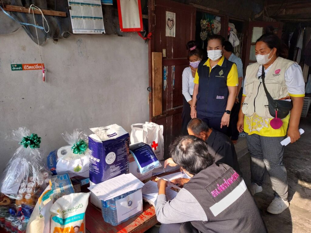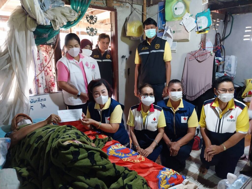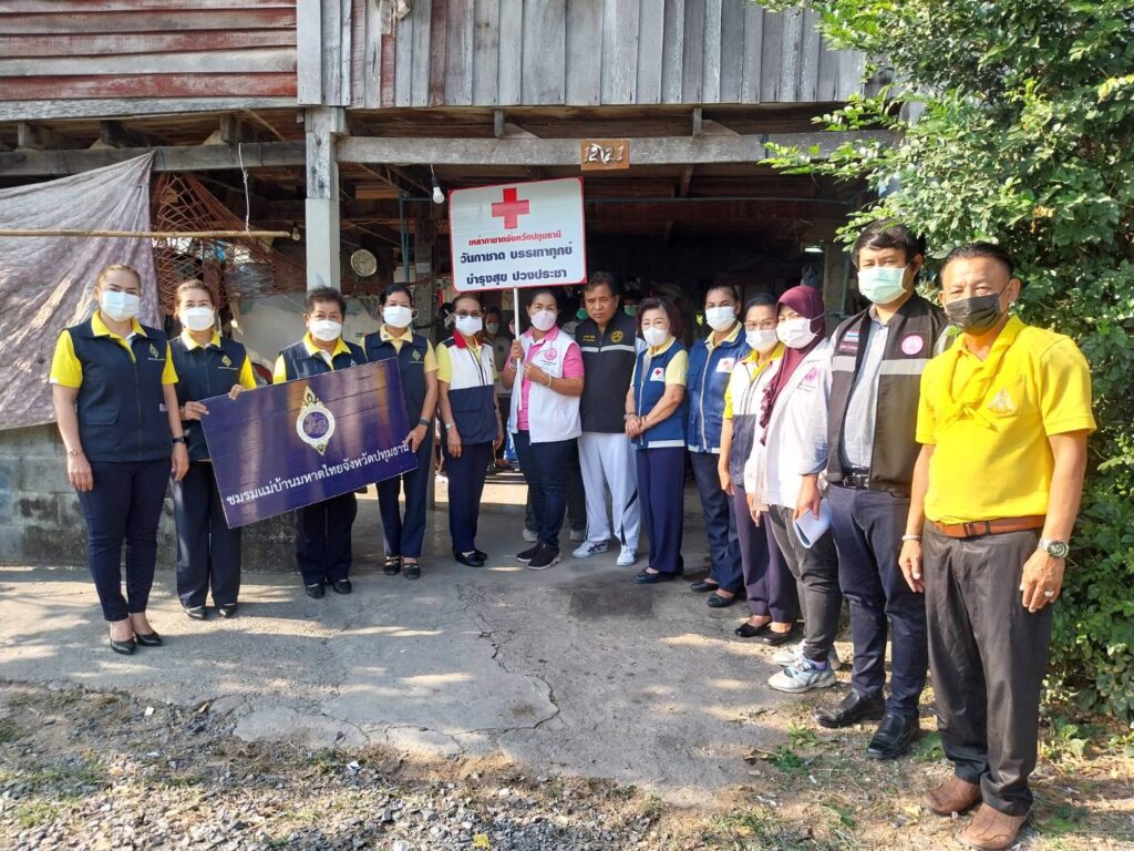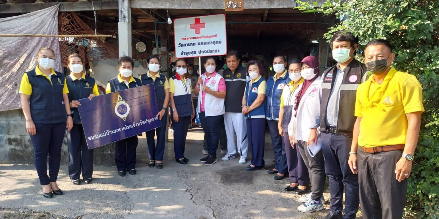 เมื่อเวลา 09.00 น. วันที่ 19 มกราคม 2566 นางจิณจนา โอสถธนากร นายกเหล่ากาชาดจังหวัดปทุมธานี มอบหมายให้ นางฉวีวรรณ คอวิเชียรกุล รองนายกเหล่ากาชาดจังหวัดปทุมธานี และนางสาวราตรี หวังประโยชน์ คณะกรรมการและสมาชิกเหล่ากาชาดจังหวัดปทุมธานี พร้อมอาสาช่วยปฏิบัติงานลงพื้นที่เดินทางมามอบสิ่งของให้กับ ลงพื้นที่ตรวจเยี่ยมช่วยเหลือผู้ป่วยที่ด้อยโอกาสและให้กำลังใจแก่ครอบครัวสามีภรรยาป่วยเป็นมะเร็งทั้งคู่ และต้องดูแลลูก ๆ อีก 5 คน ที่บ้านเลขที่ 12/21 หมู่ 5 ตำบลคูบางหลวง อำเภอลาดหลุมแก้ว จังหวัดปทุมธานี