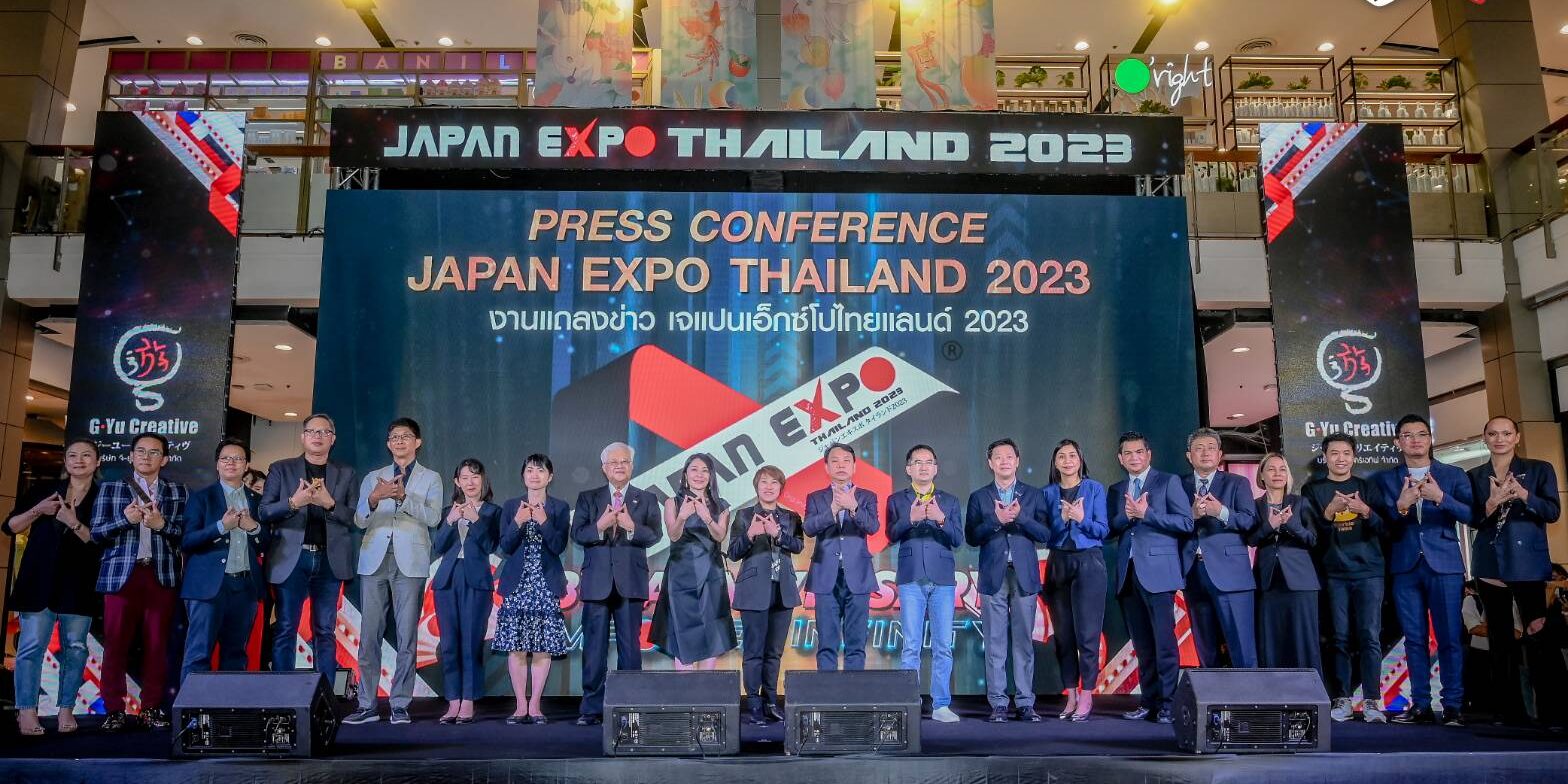 จี-ยู ครีเอทีฟ ใช้พื้นที่ลาน EDEN1 ศูนย์การค้าเซ็นทรัลเวิลด์ จัดงานแถลงข่าว โดยมีผู้บริหาร เหล่าพันธมิตร และผู้สนับสนุนหลักอย่างเป็นทางการ ทัพศิลปินและไอดอลกว่า 200 ชีวิต เข้าร่วมงานแถลงข่าว JAPAN EXPO THAILAND 2023 สุดยิ่งใหญ่อลังการ โดยเริ่มจาก คุณยุพเรศ เอกธุระประคัลภ์ ประธานบริษัท จี-ยู ครีเอทีฟ จำกัด และ คุณโทโมมิ โคบายาชิ กรรมการบริหารบริษัท จี-ยู ครีเอทีฟ จำกัด โชว์คอนเทนต์กิจกรรมญี่ปุ่นแบบครบรสทั้ง 17 โซน ที่จะทำให้คุณสนุก สุข และอิ่มเอมไปกับบรรยากาศความเป็นที่สุดของประเทศญี่ปุ่น ให้ผู้เข้าร่วมงานได้ชิม ช้อป และเพลิดเพลินไปกับกิจกรรมต่างๆ ภายในงานตลอด 3 วันเต็ม!!